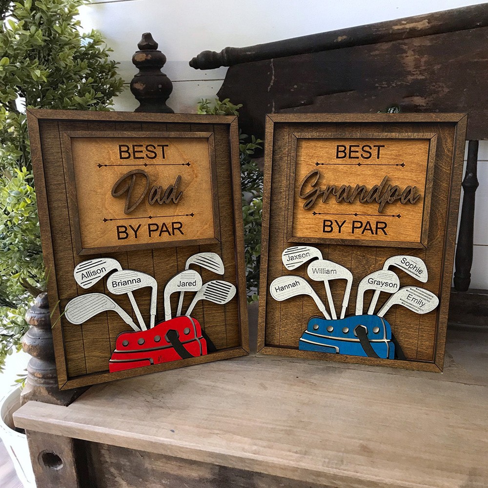 Best Dad by Par Personalized Golf Sign with Kids Names Gifts for Dad Grandpa Keepsake Gift for Golf Lover Father's Day Gifts