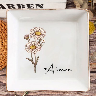 Custom Birth Flower Jewelry Dish with Name for Her Gifts for Friend Wedding Bridesmaid Gift Christmas Gift for Mom
