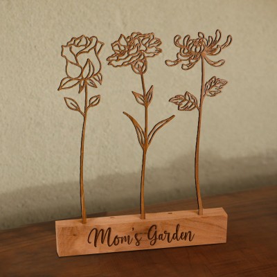 Wood Family Birth Flower Garden Custom Keepsake Home Decor for Family Christmas Gift for Mom Grandma