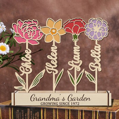 Grandma's Garden Wood Sign Custom Wood Birth Flower Garden Unique Gifts for Grandma Mom Christmas Gift