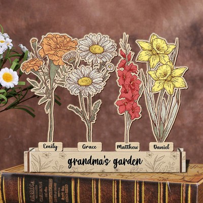 Personalized Wood Family Birth Flower Garden Keepsake Gifts for Grandma Mom Family Christmas Gift