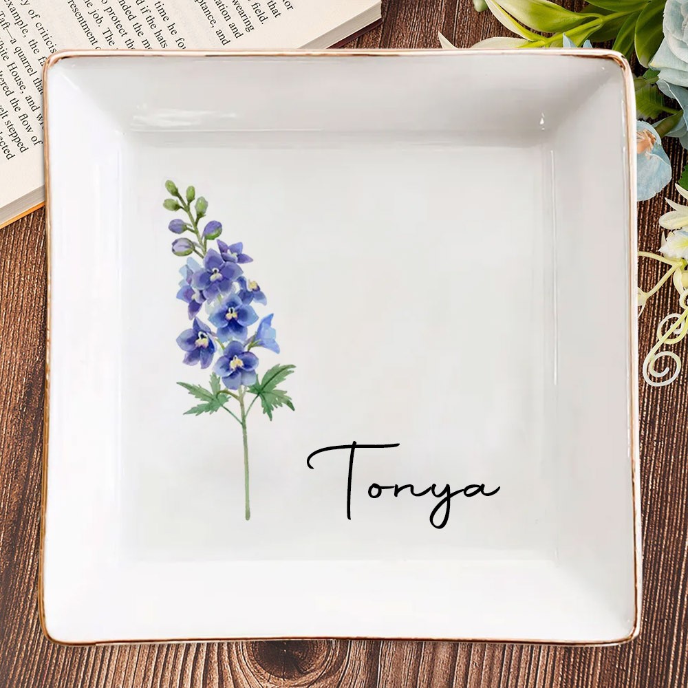 Custom Birth Flower Jewelry Dish Wedding Bridesmaid Gift Birthday Gift for Friend Christmas Gifts for Women