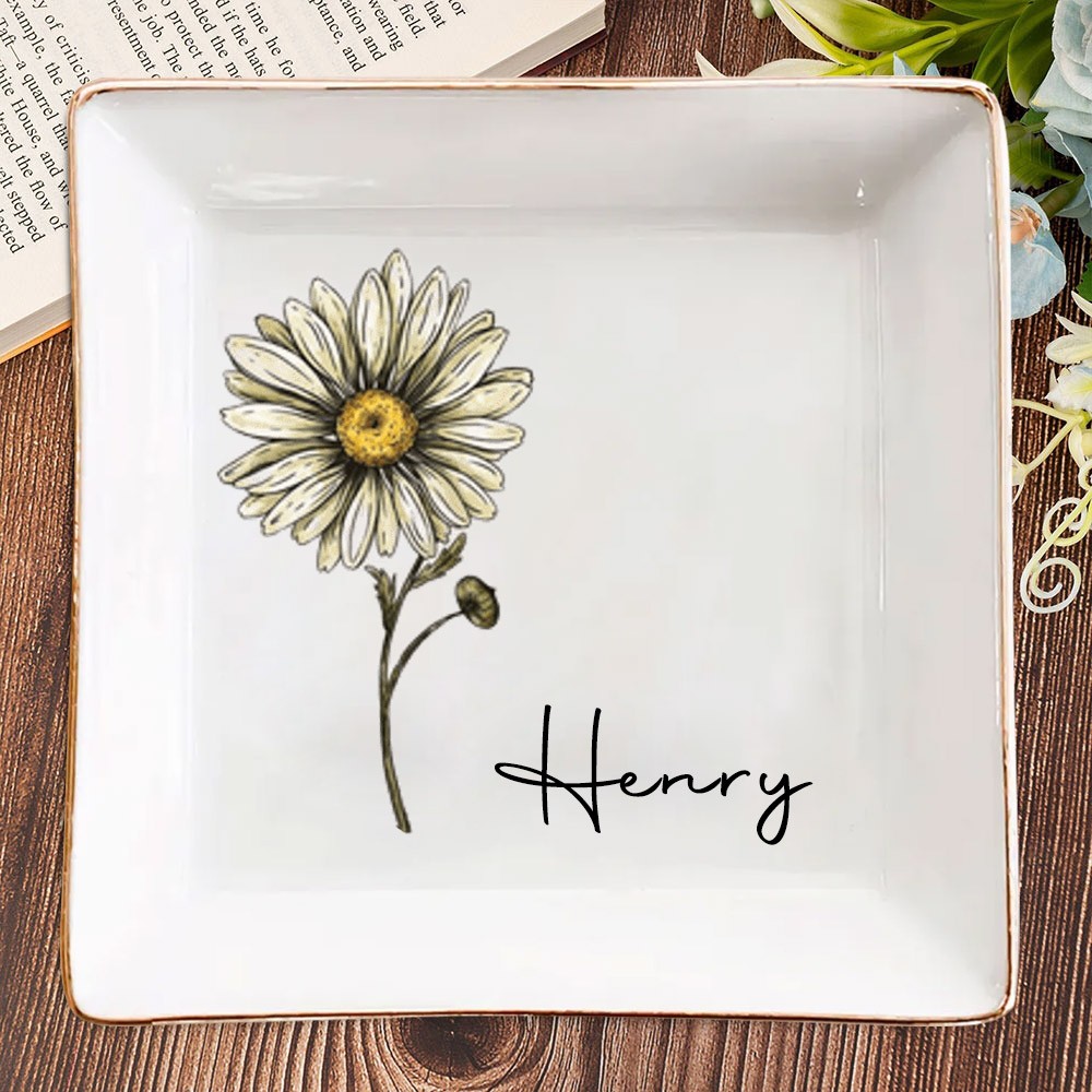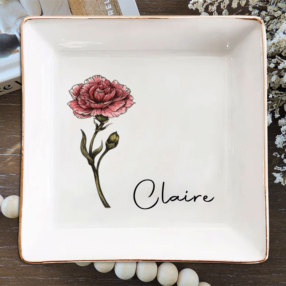 Custom Birth Flower Jewelry Dish with Name for Her Gifts for Friend Wedding Bridesmaid Gift Christmas Gift for Mom