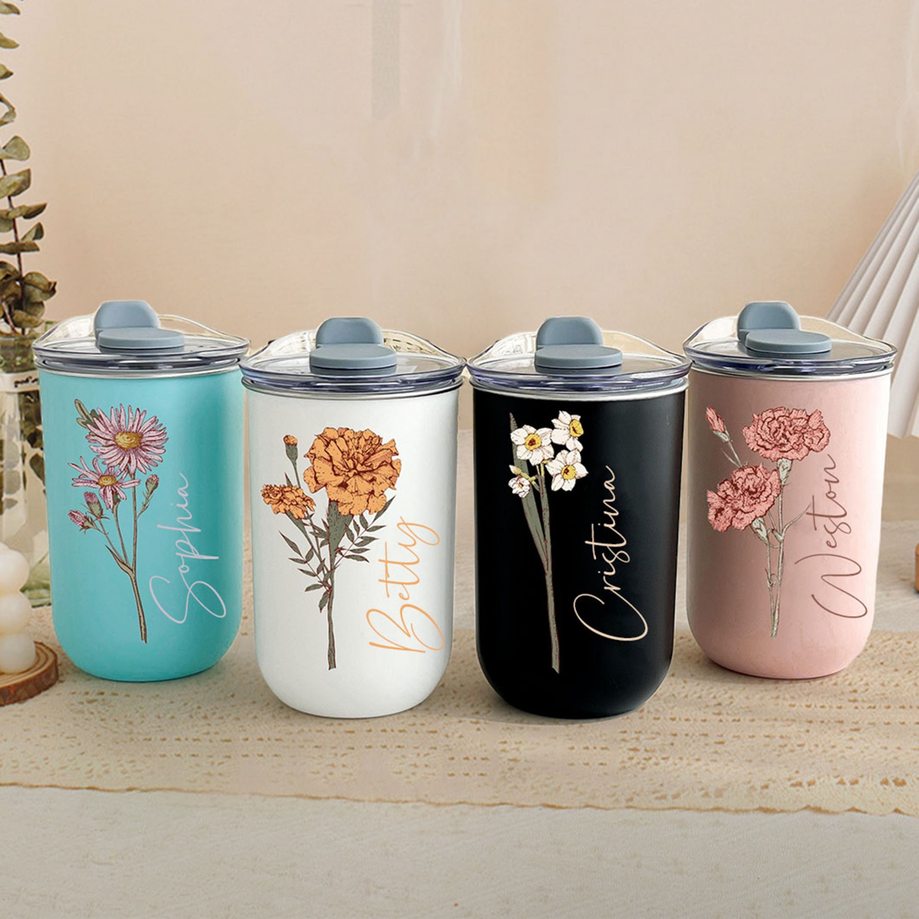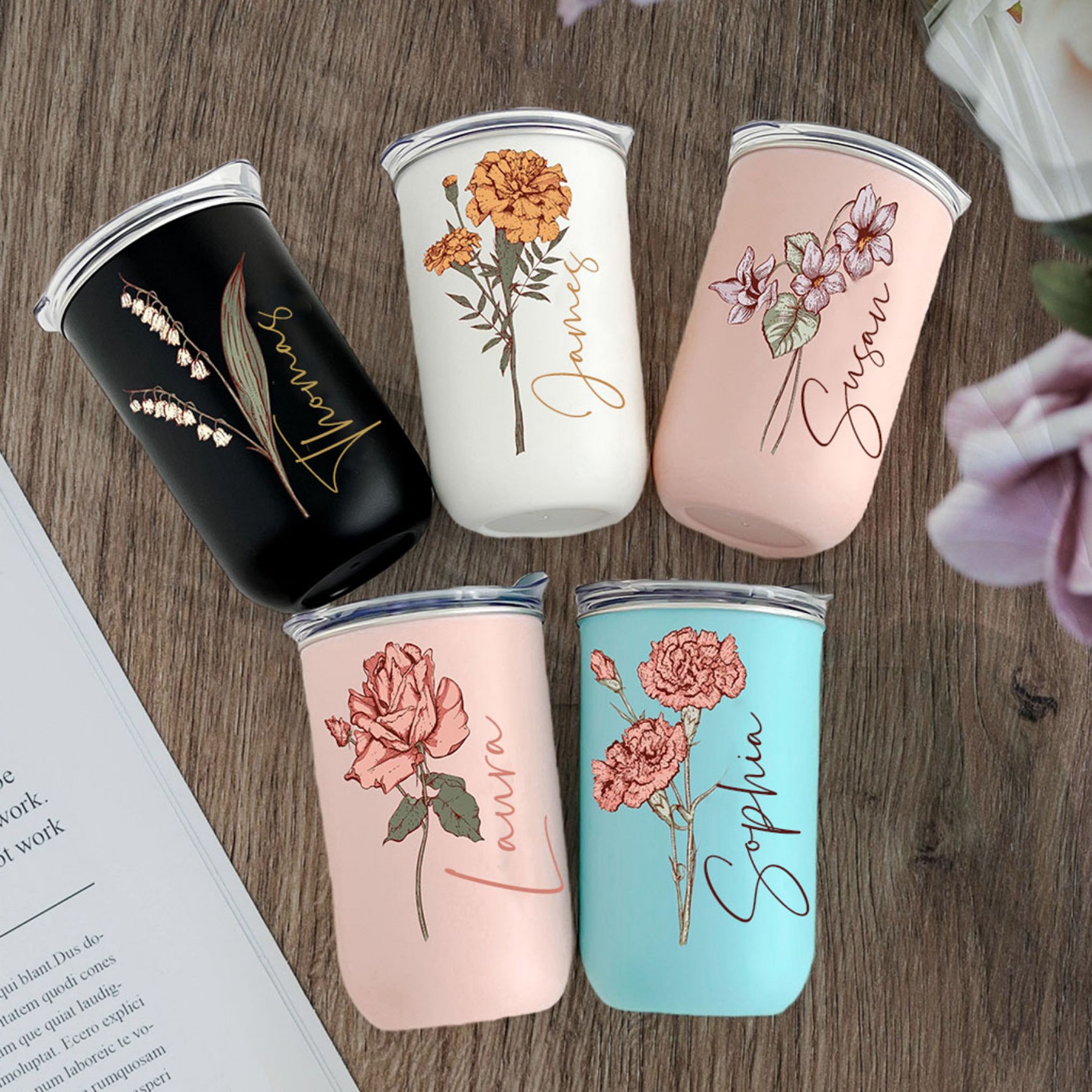 Custom Birth Flower Tumbler with Lid Bridesmaid Proposal Gift Wedding Gifts for Her Christmas Gift Ideas