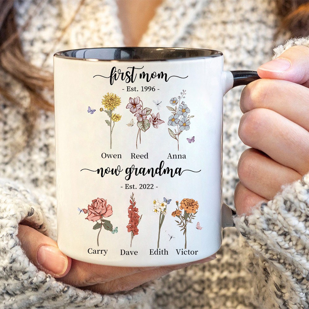 Custom First Mom Now Grandma Birth Flower Mug With Names Preparing Meaningful Gift For Mom Grandma Mother's Day Gift
