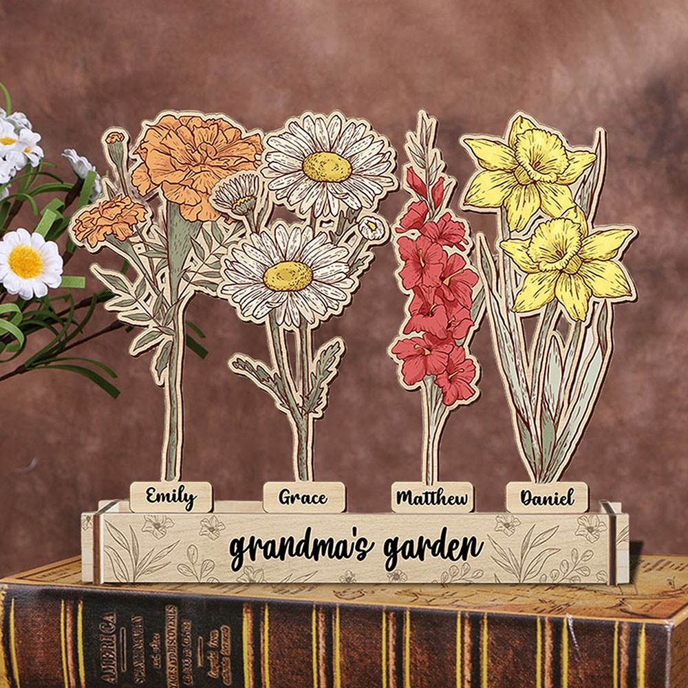Custom Grandma's Garden Wood Sign with Kids Names Wood Birth Flower Garden for Grandma Mom Christmas Gifts