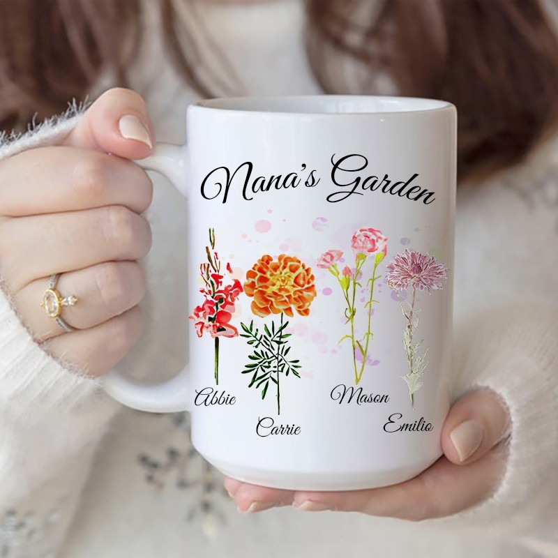 Personalized Birth Flower Camping Mug for Mom Grandma