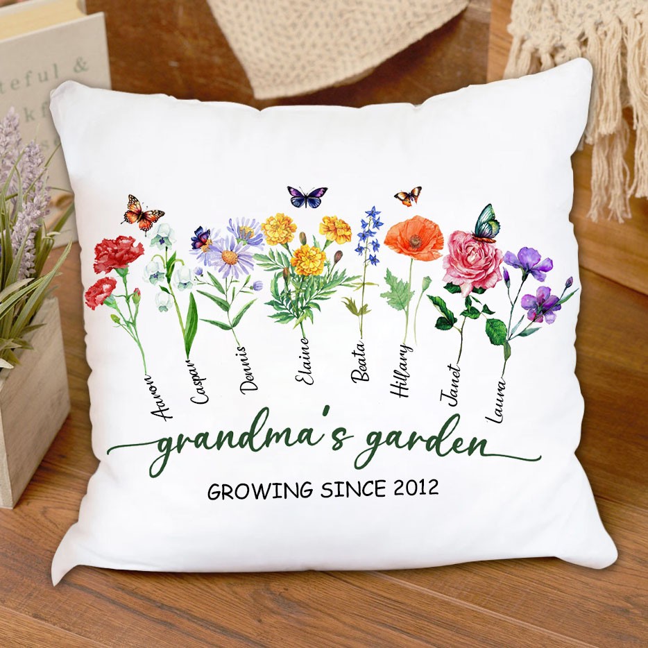 Personalized Birth Flower Print Art Pillow for Grandma,Mom