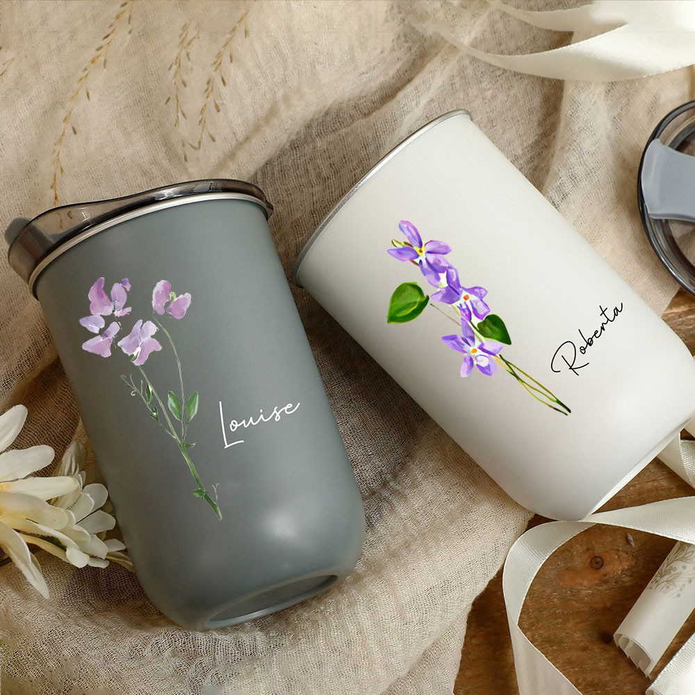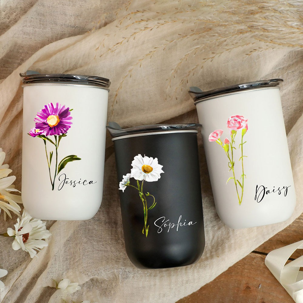 Personalized Birth Flower Tumbler with Lid Wedding Gifts for Her Unique Gift for Mom Christmas Gift