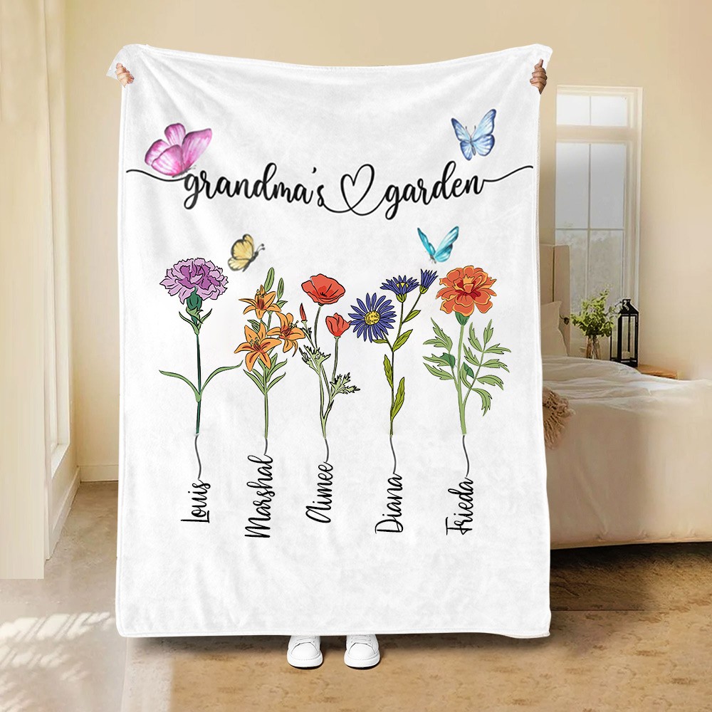 Personalized Grandma's Garden Birth Flower Blanket with Names