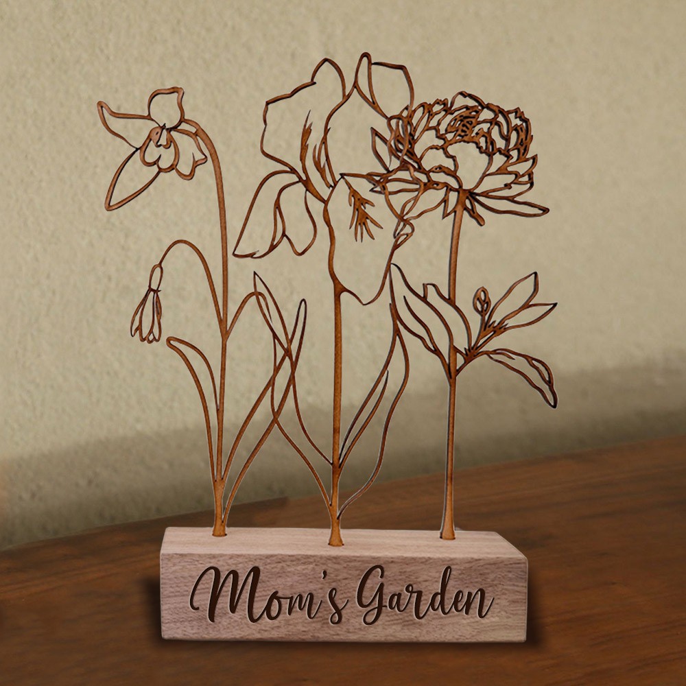 Personalized Wood Family Birth Flower Garden Keepsake Gifts for Grandma Mom Family Christmas Gift