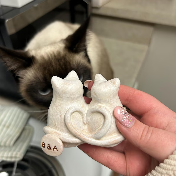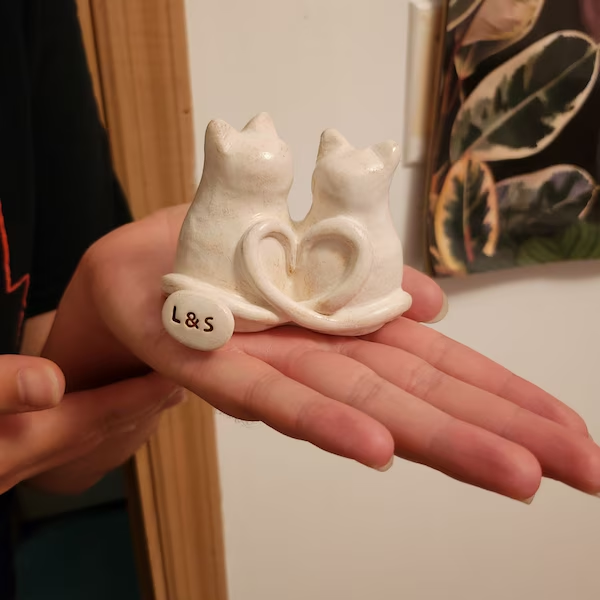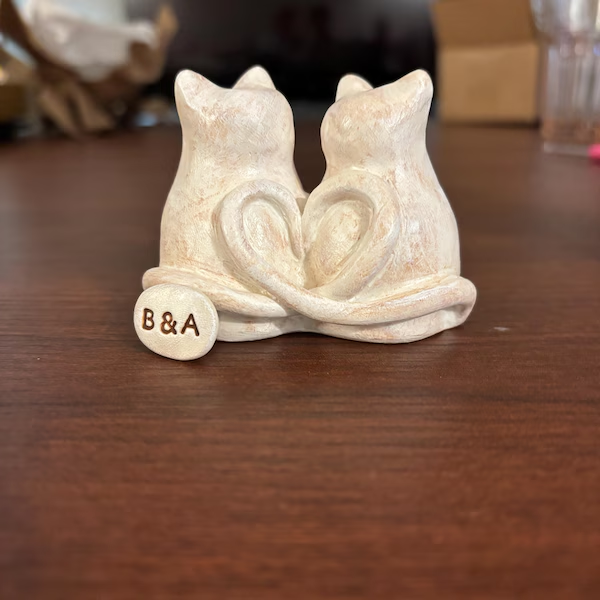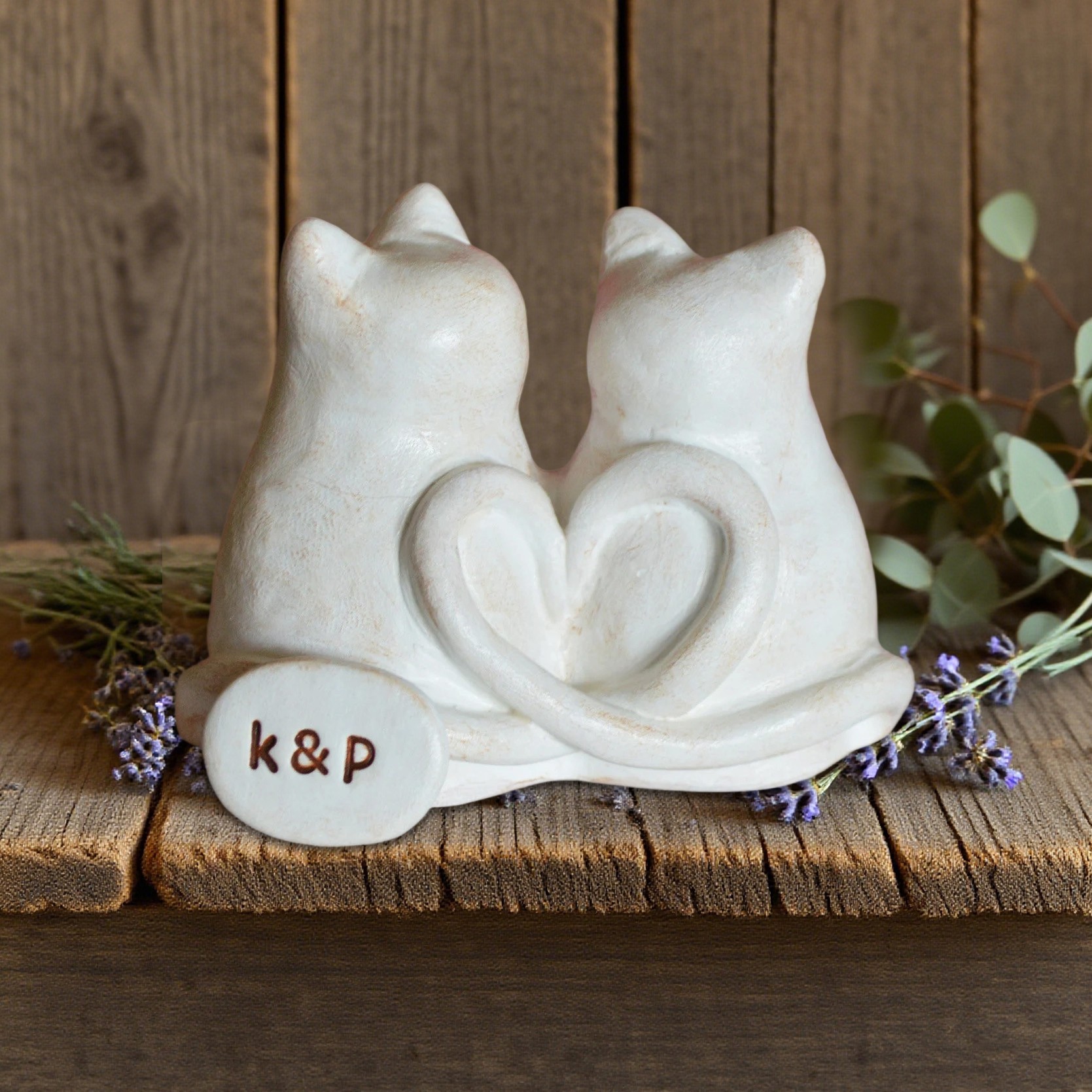 Cats Wedding Cake Topper with Heart Shaped Tails Custom Initials Available Cute Wedding Anniversary Gift Ideas