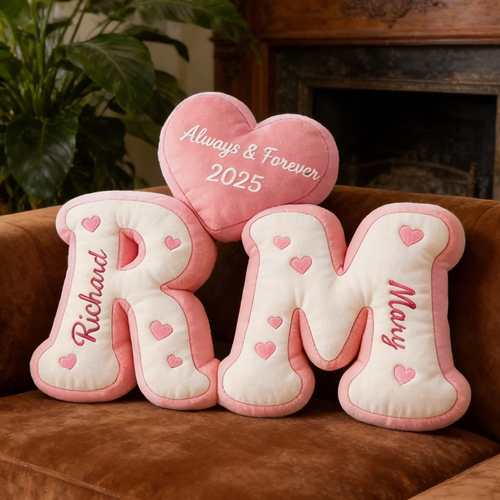 Couple Letter Shaped Pillow Sets with Name Personalized Gifts for Couple Anniversary Gift Valentine's Day Gift Ideas