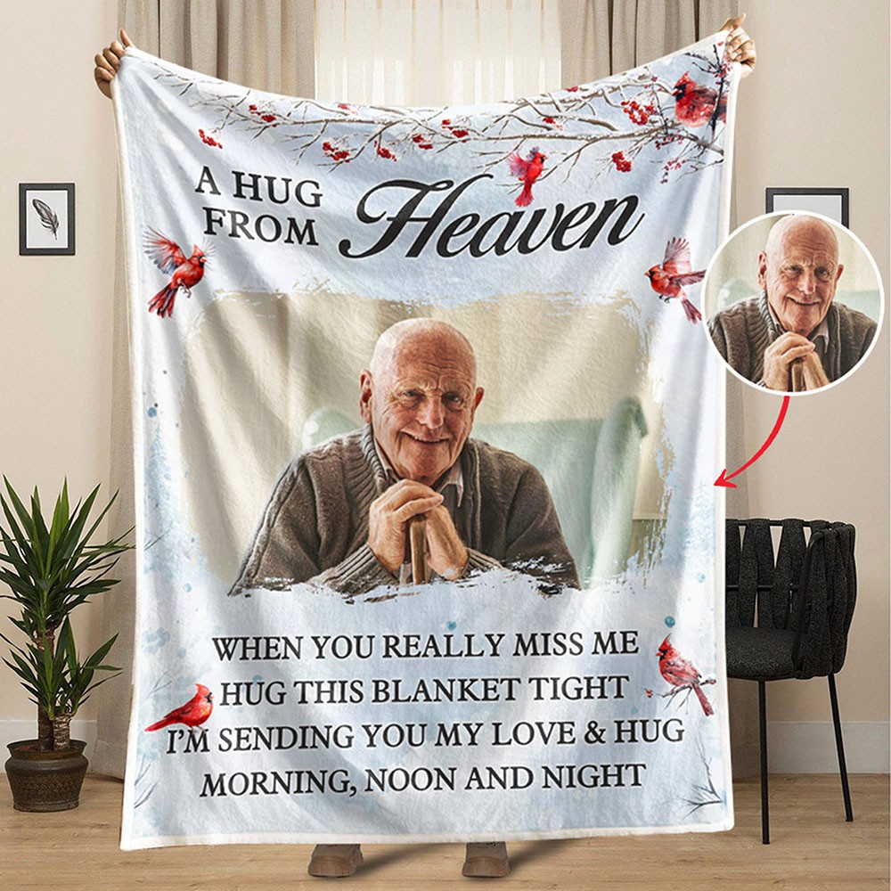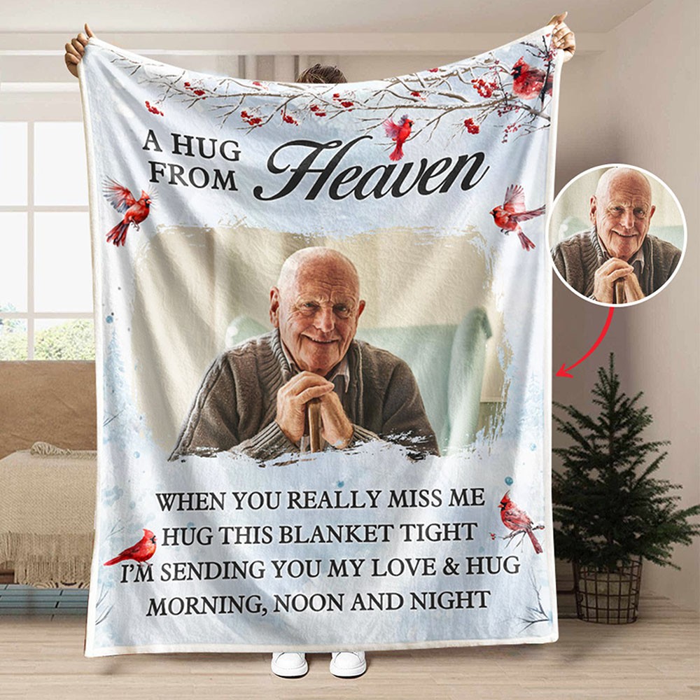 Custom A Hug from Heaven Blanket with Photo Memorial Gifts for Loss Dad Grandpa Sympathy Gift Christmas Gift