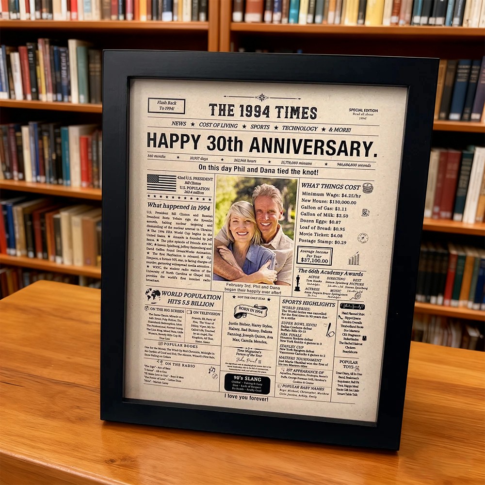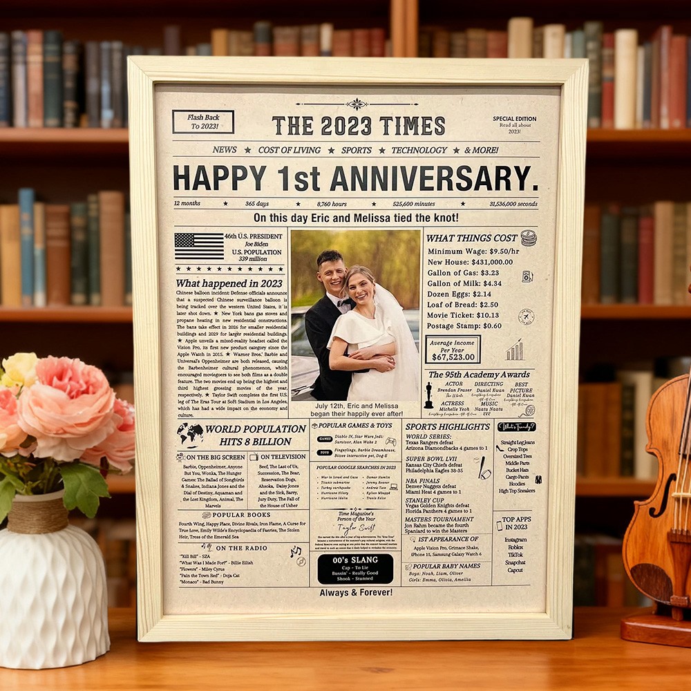 Custom Anniversary Photo Newspaper Poster Frame 1st Wedding Anniversary Gifts Valentine's Day Gift for Couples