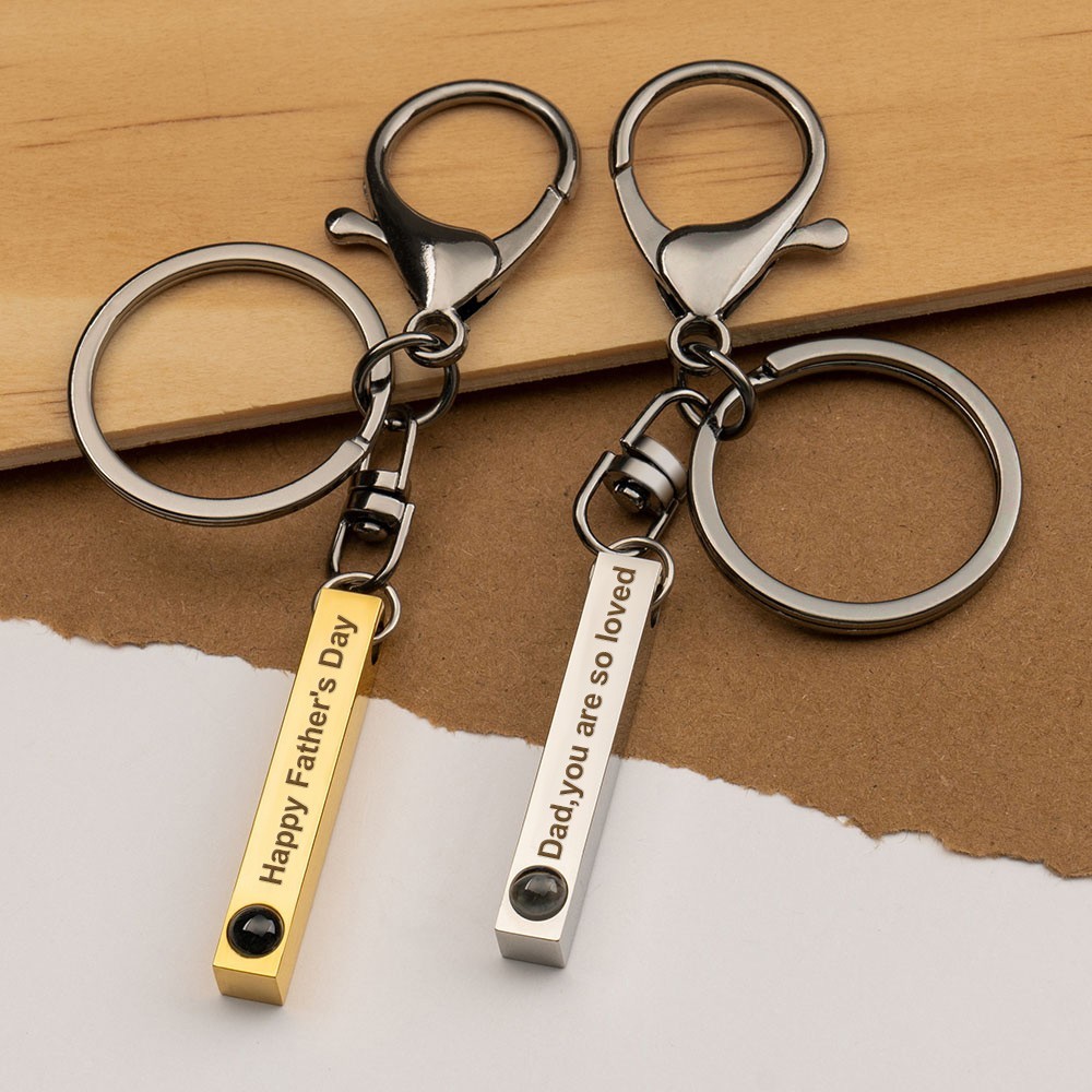 Custom Bar Photo Projection Keychain With Engraving Names Gift for Dad Father's Day Gifts