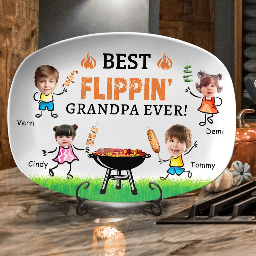 Custom Best Flippin' Papa Ever BBQ Plate With Photo And Kids Name Unique Gifts For Dad Father's Day Gift Ideas