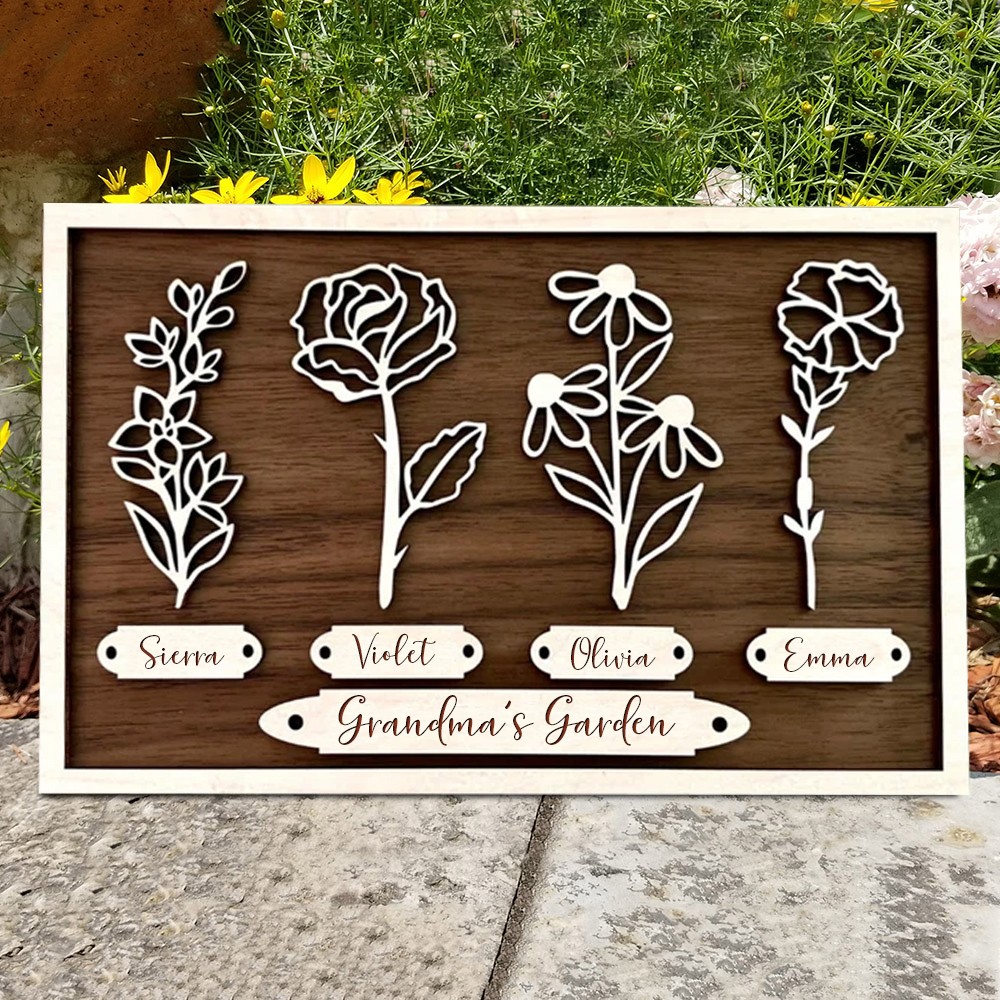 Custom Birth Flower Frame Wooden Names Sign To Grandma's Garden Love Gift For Grandma Mom Mother's Day Gift Ideas