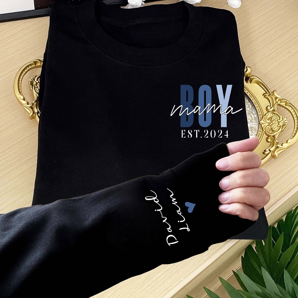 Custom Boy Mama Sweatshirt with Kids Names on Sleeve Mama Of Boys Hoodie for Mom New Mom Gift Mother's Day Gifts