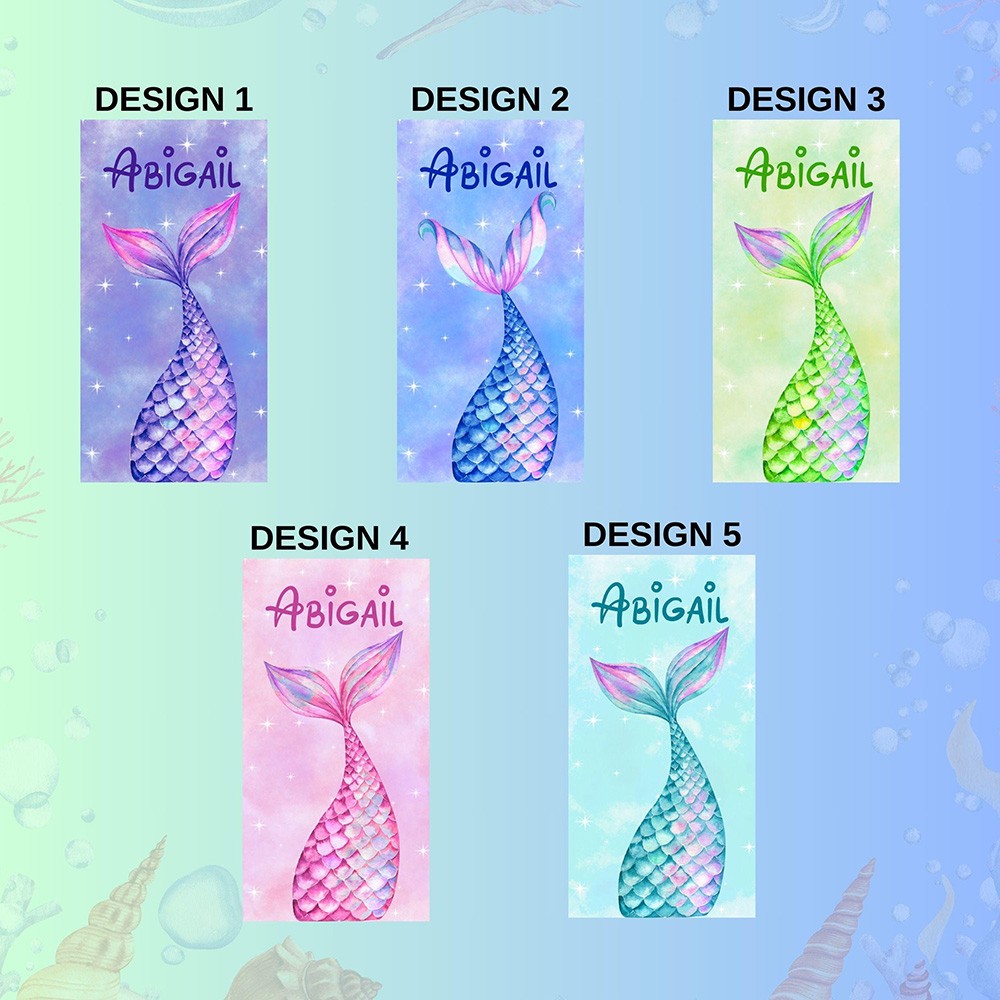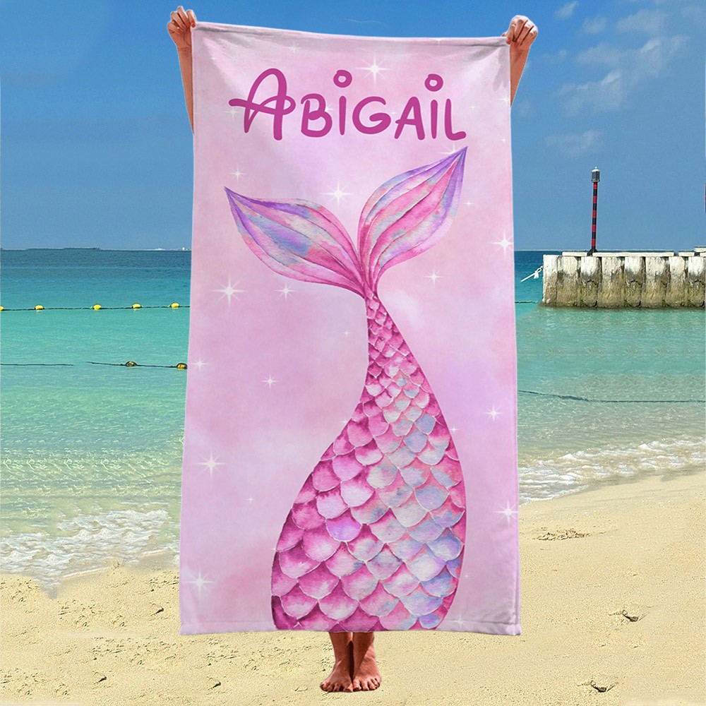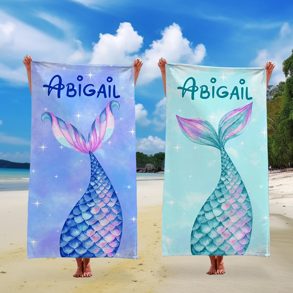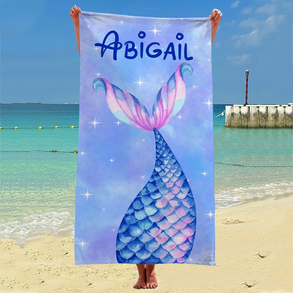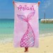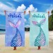 Custom Cartoon Mermaid Tail Beach Towel with Name Summer Vacation Gift for Girls Birthday Gift for Kids