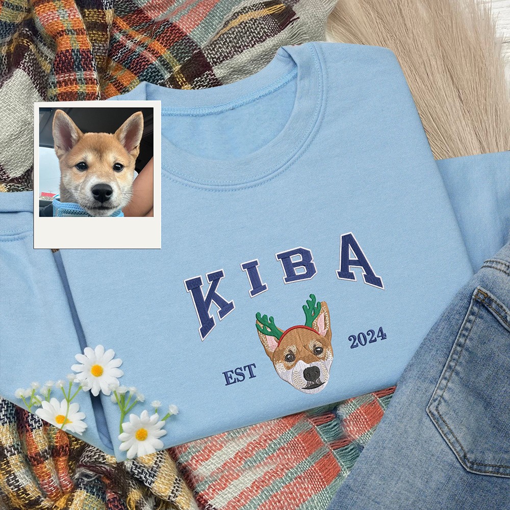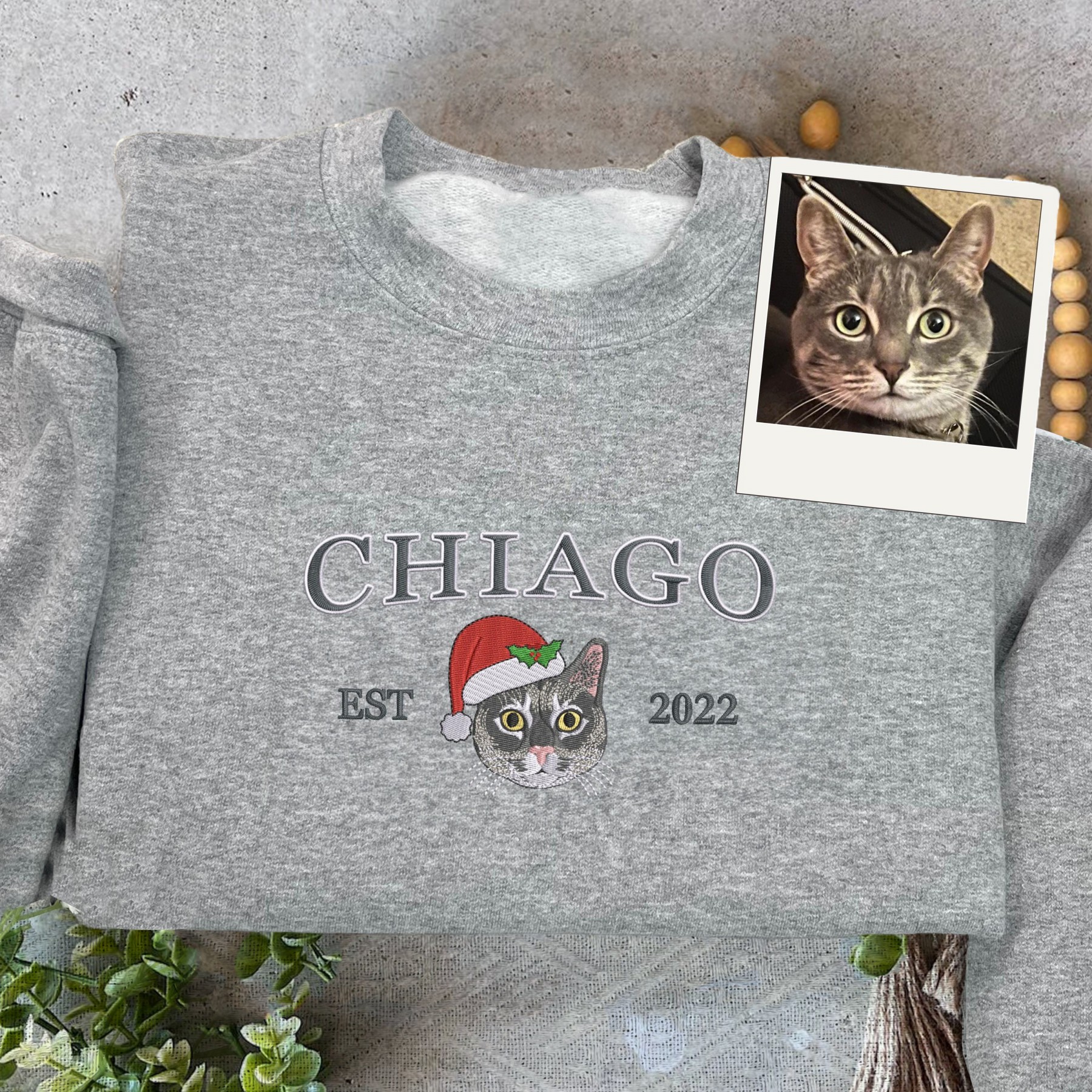 Custom Christmas Pet Cat Embroidered Portrait Photo Sweatshirt Gifts for Cat Lovers Christmas Gift for Pet Lover