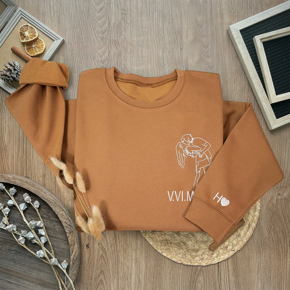Custom Couple Embroidered Portrait Outline Hoodie with Roman Numeral Anniversary Gift for Him Valentine's Day Gift for Couples