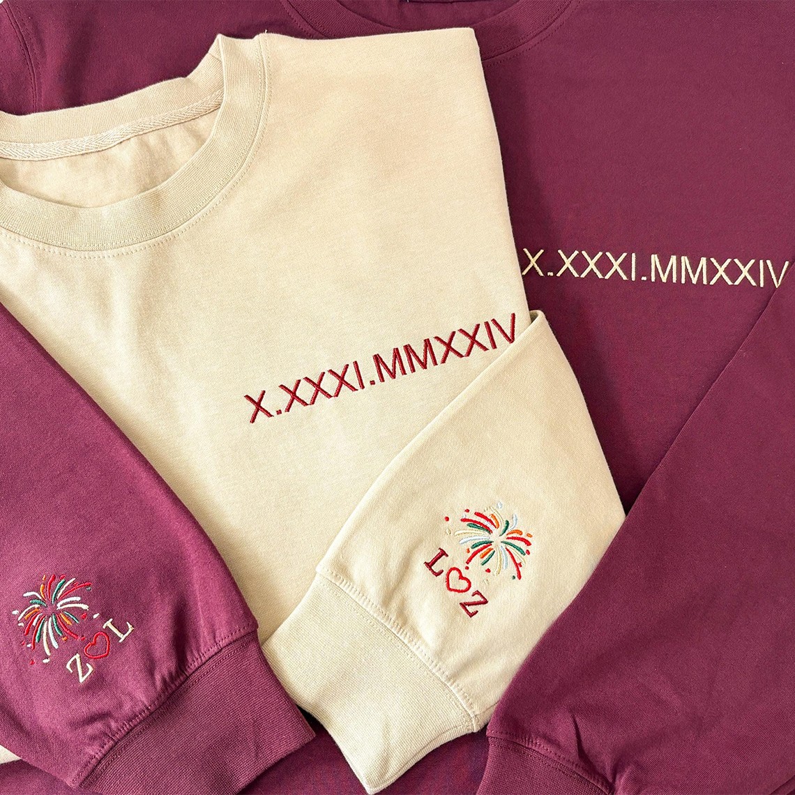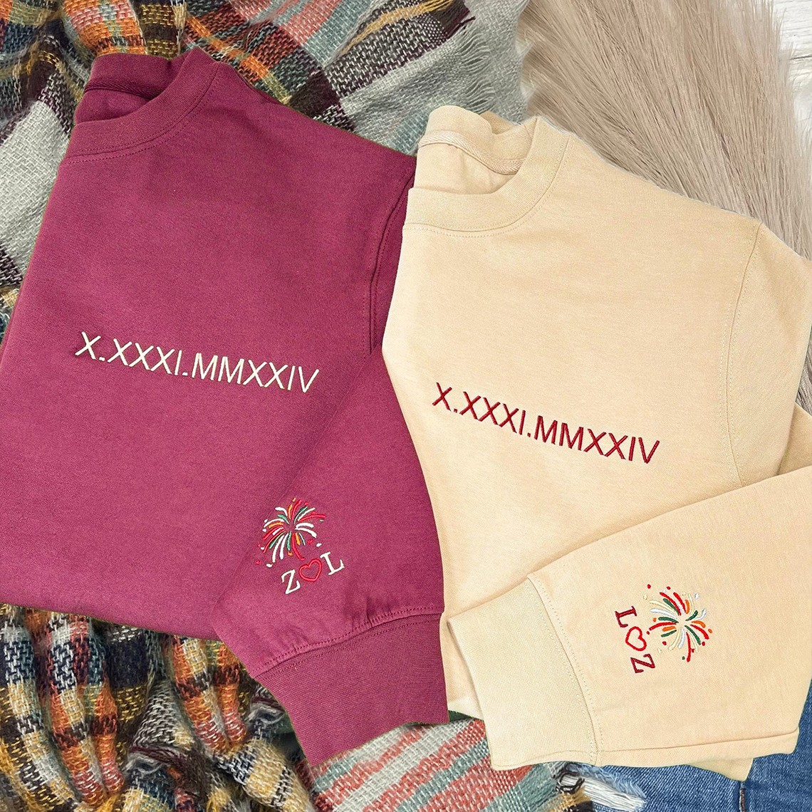 Custom Couple Embroidered Roman Numeral Matching Sweatshirt Unique Gift for Couples Gifts for Anniversary Valentine's Day