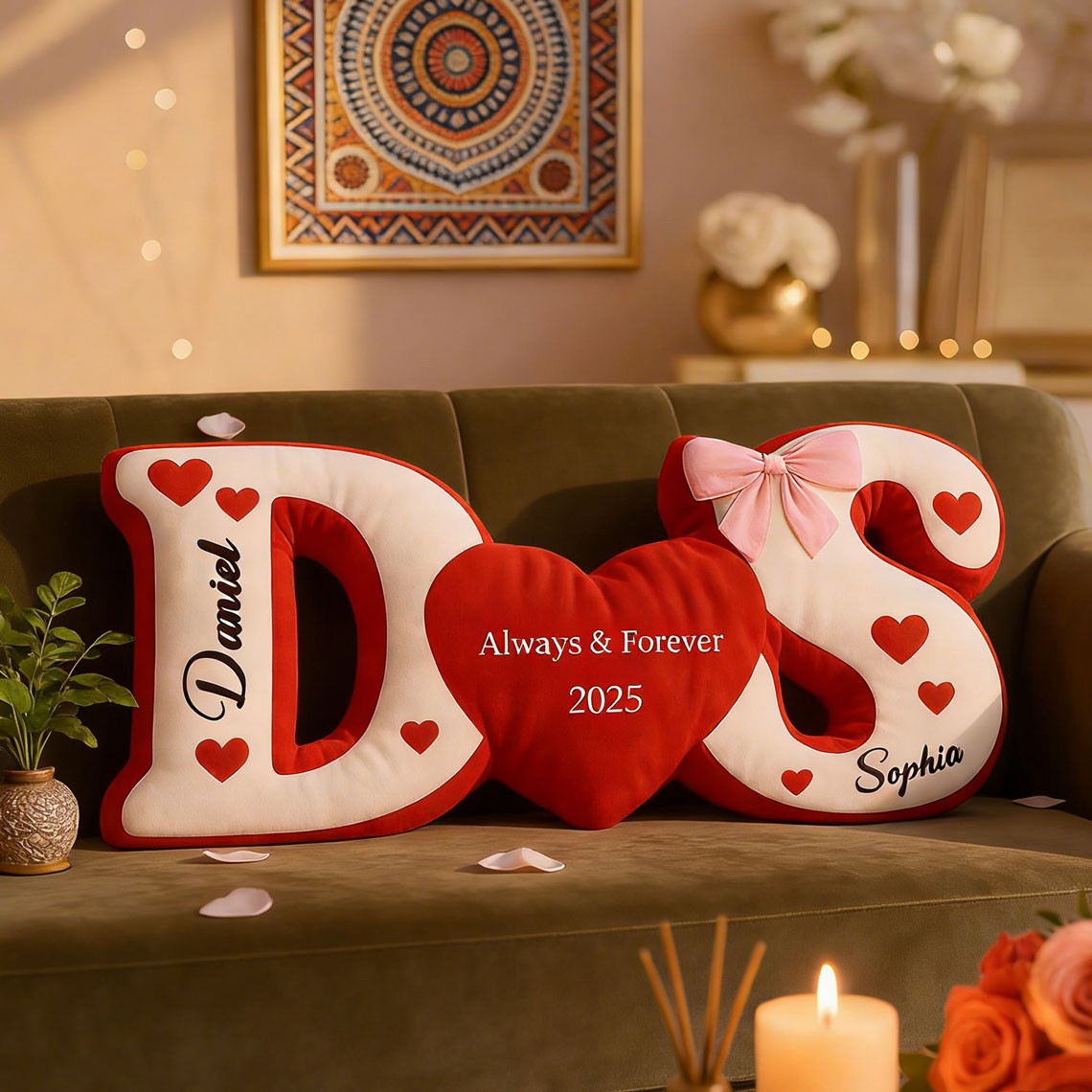 Custom Couple Initial Heart Throw Pillow with Name Anniversary Gifts for Her Unique Valentine's Day Gift Ideas