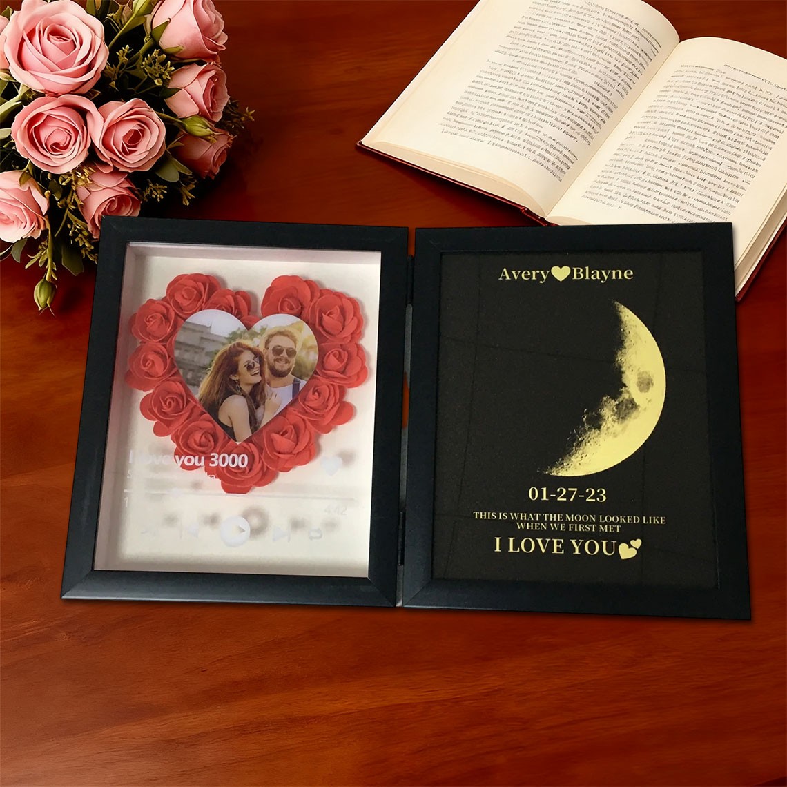 Custom Couple Portrait Flower Shadow Box with Moon Phase Calendar Gift Ideas for Couples Anniversary Gifts