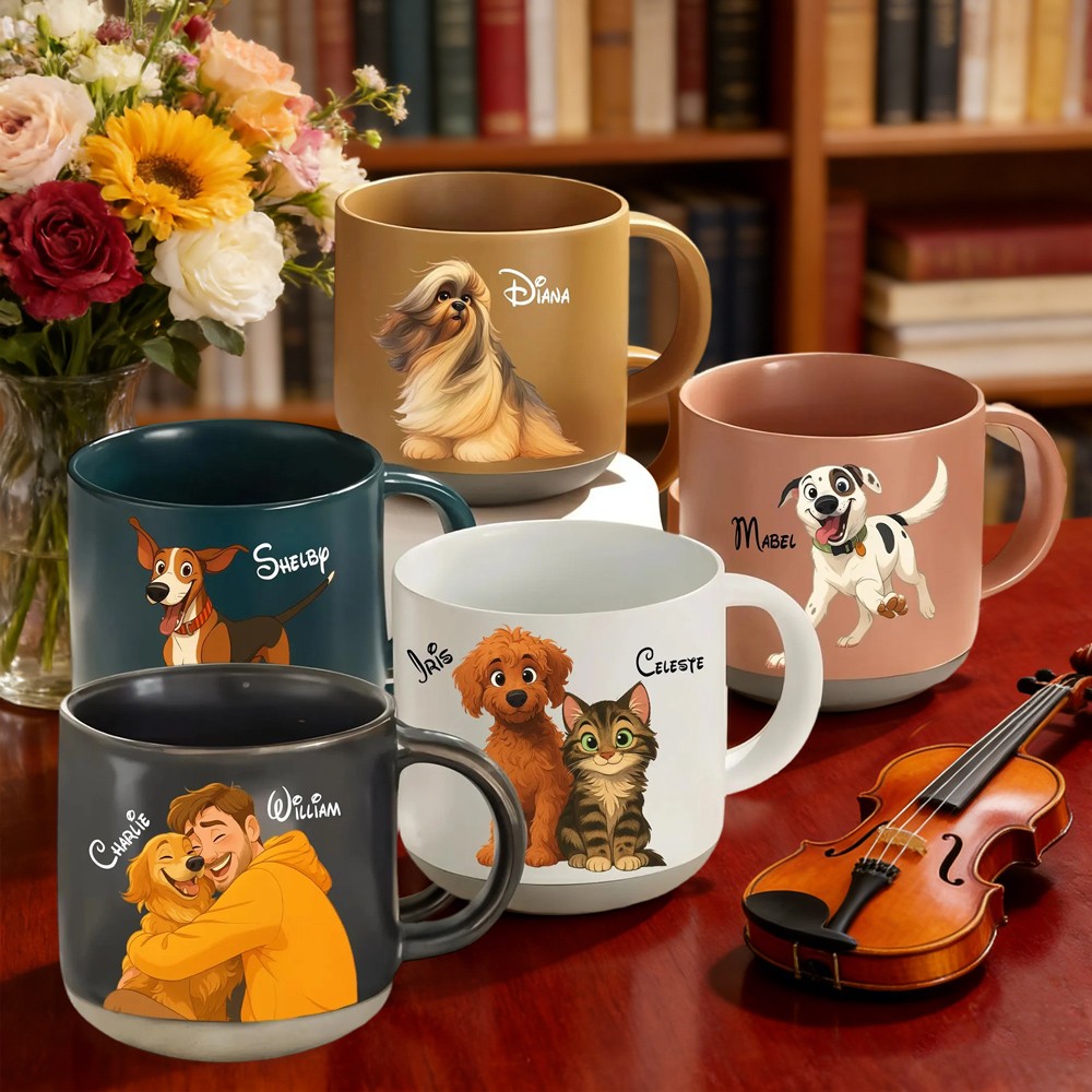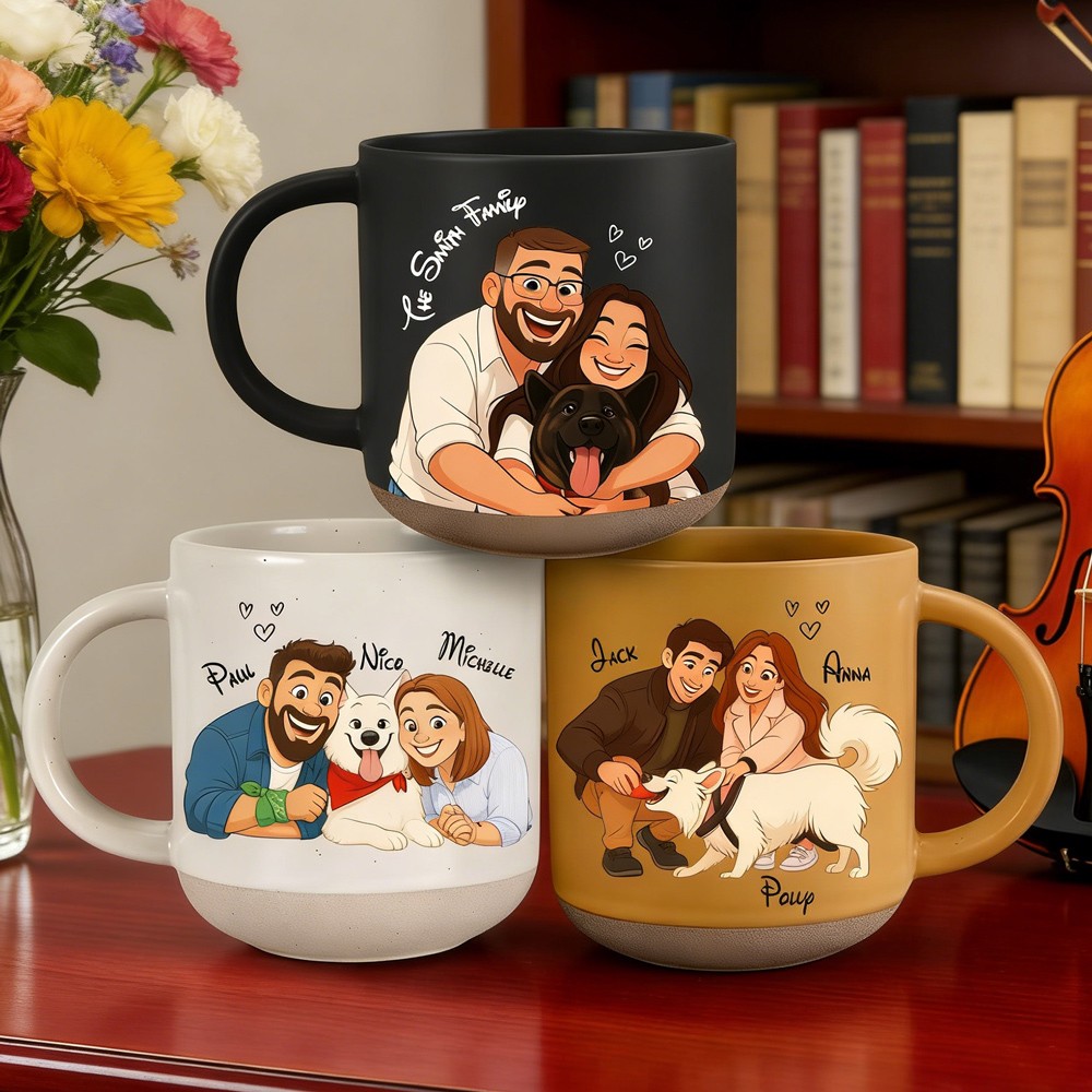 Custom Couple Portrait Mug with Pet Keepsake Gifts for Her Anniversary Gift for Him Valentine's Day Gift for Couples