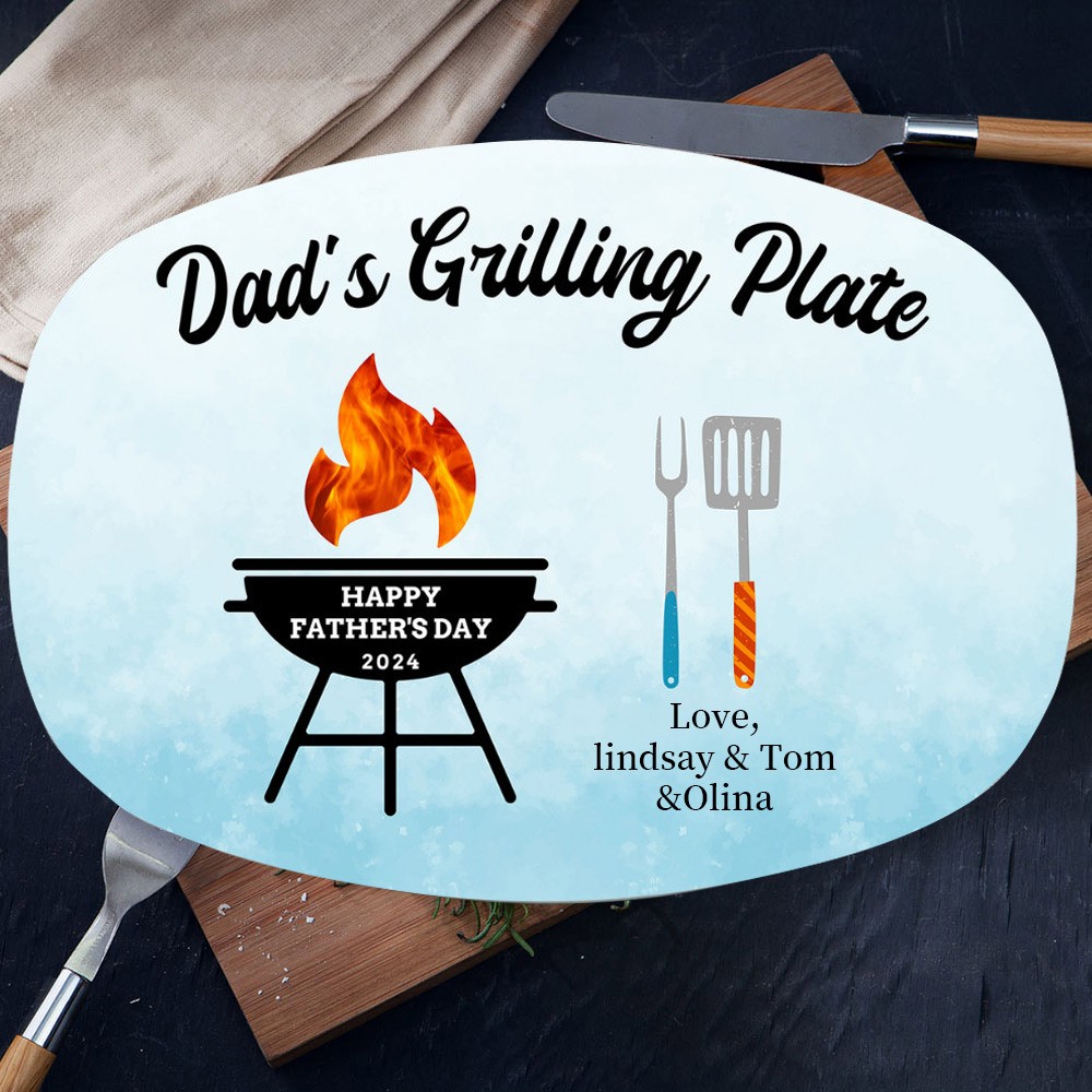 Custom Dad's Grilling Plate With Kids Names Family Gift Ideas Father's Day Gift