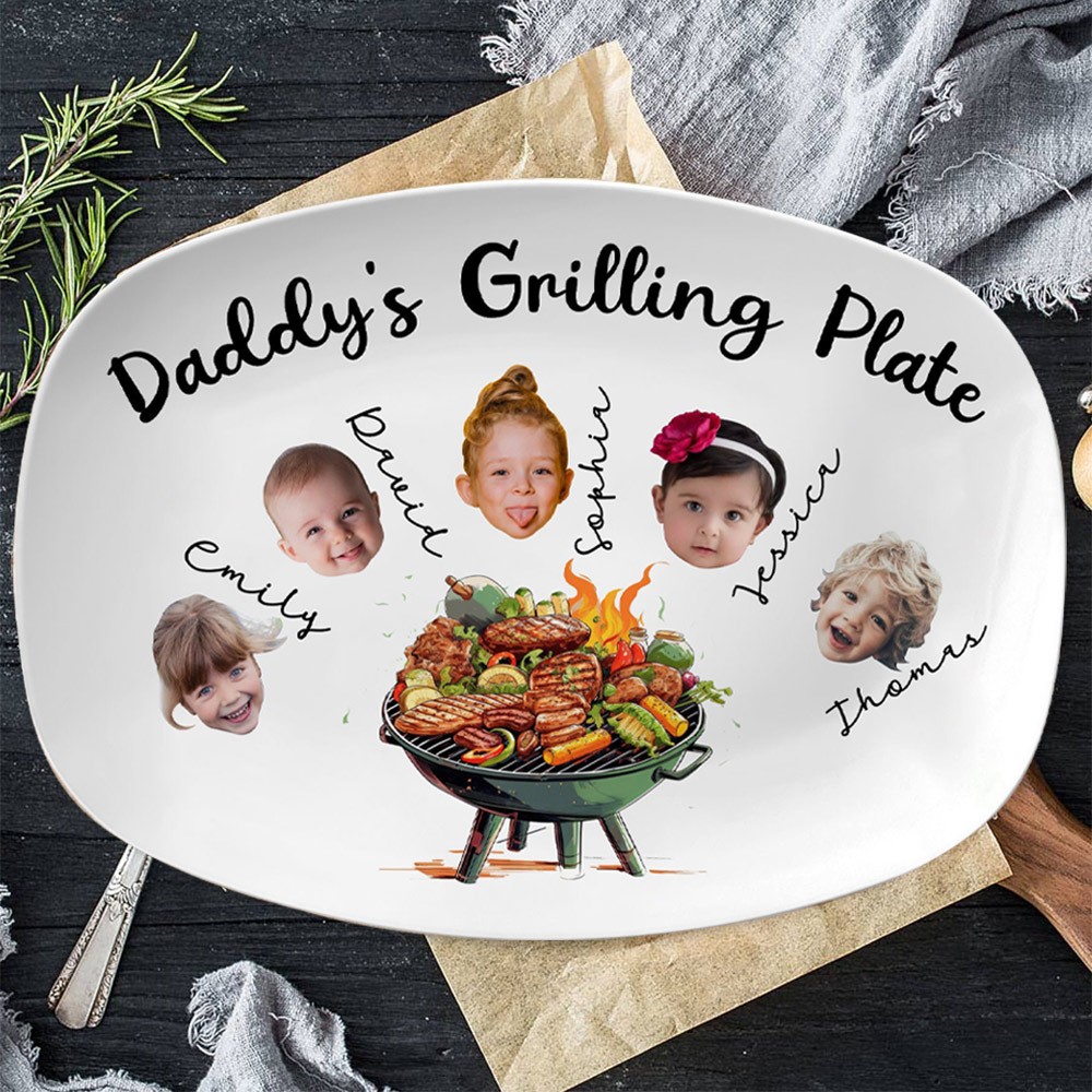 Custom Daddy's Grilling Plate With Kids Photo and Names Unique Gift For Dad Father's Day Gift Ideas