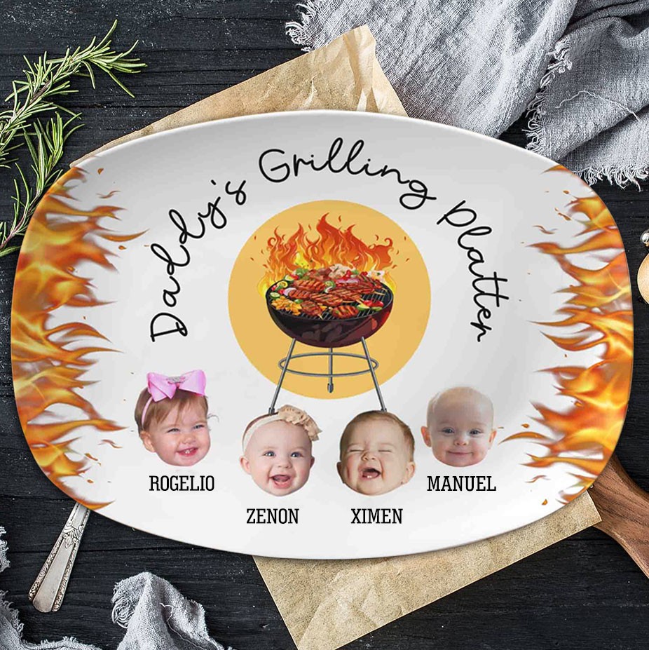 Custom Daddy's Grilling Platter With Kids Photo and Names Keepsake Father's Day Gift Ideas