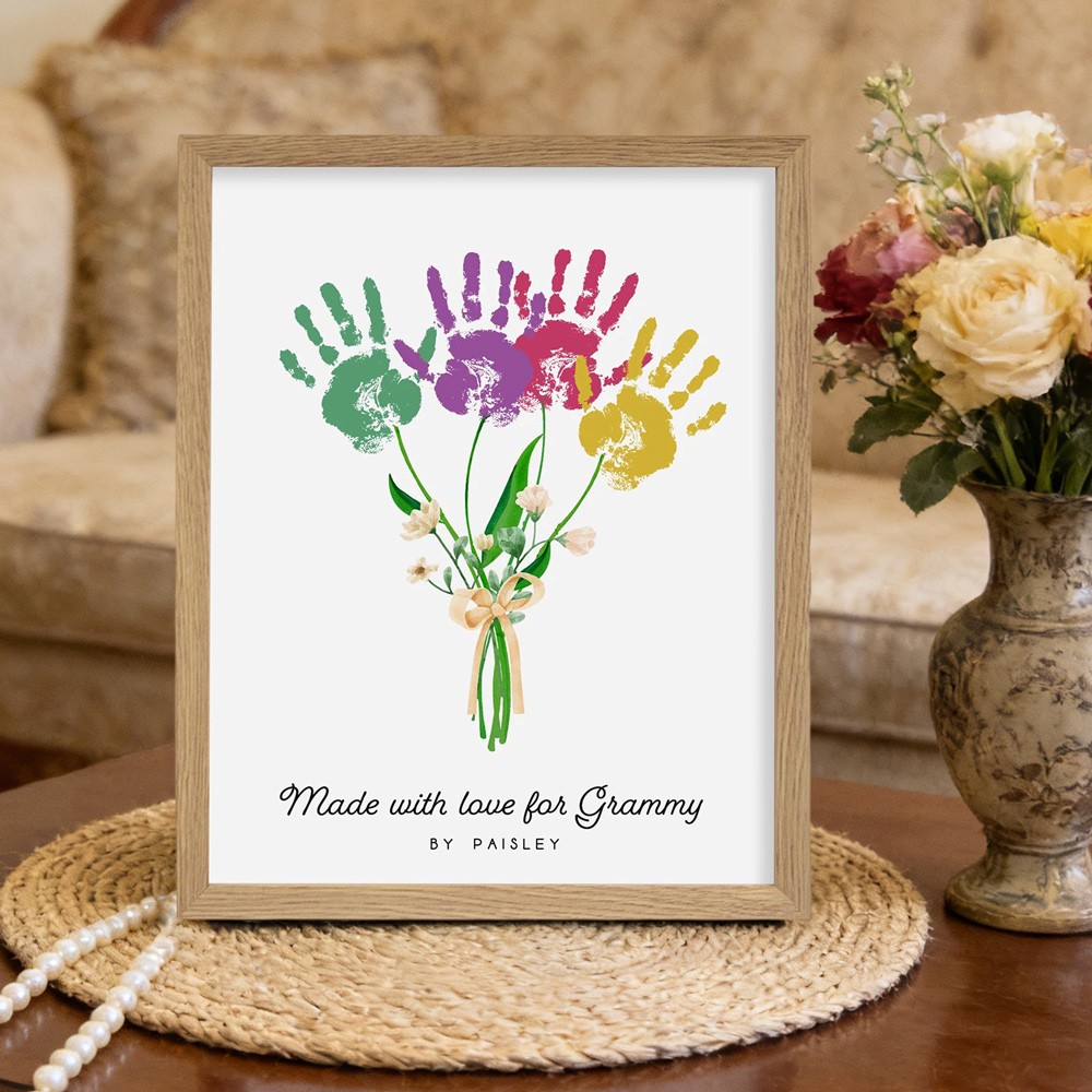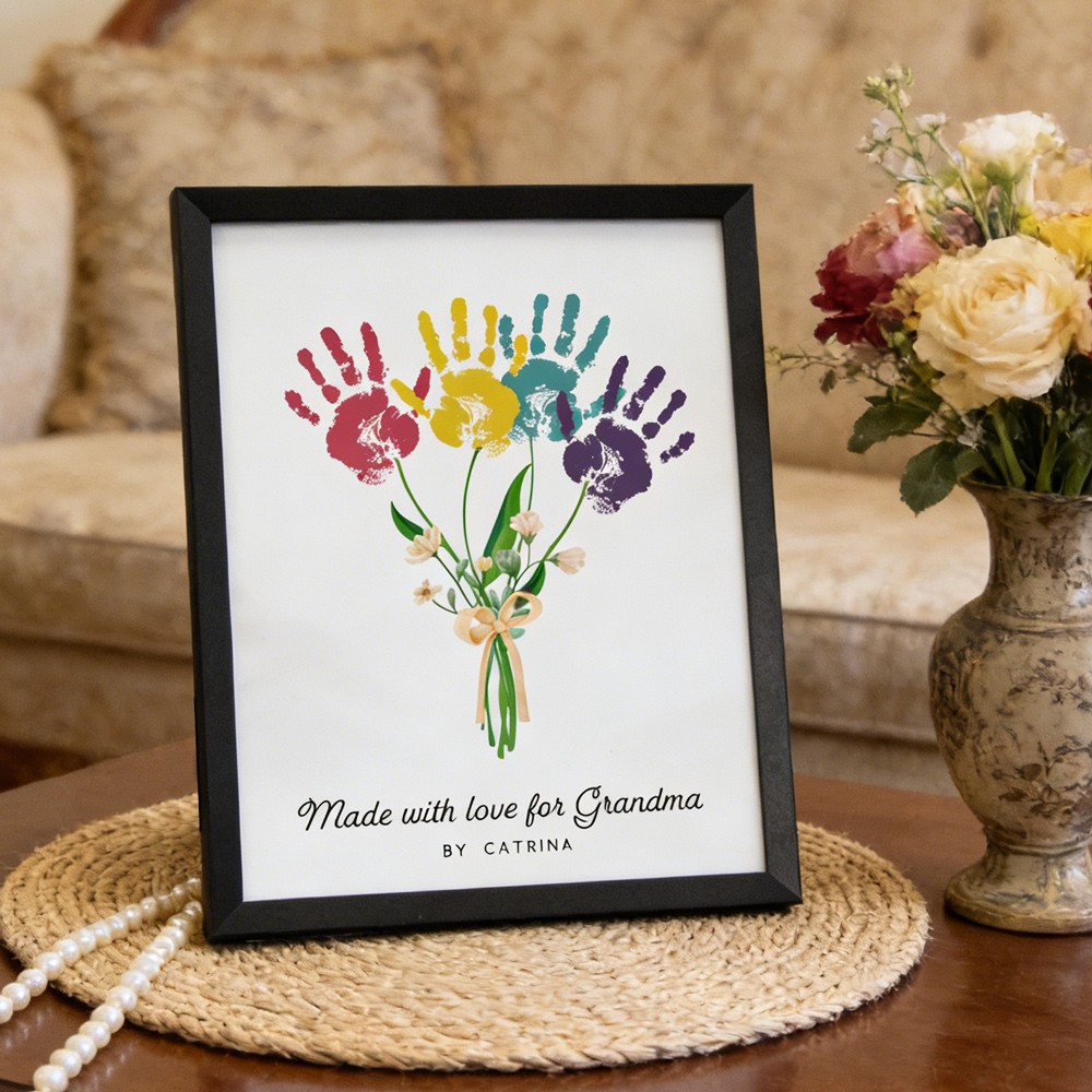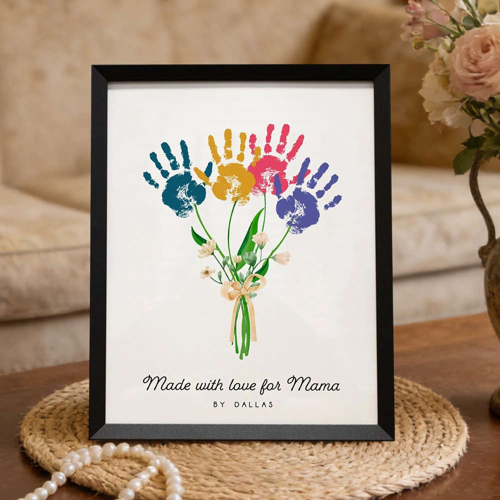 Custom DIY Handprint Wooden Family Frame Sign Unique Gift For Mom Grandma Mother's Day Gift Ideas