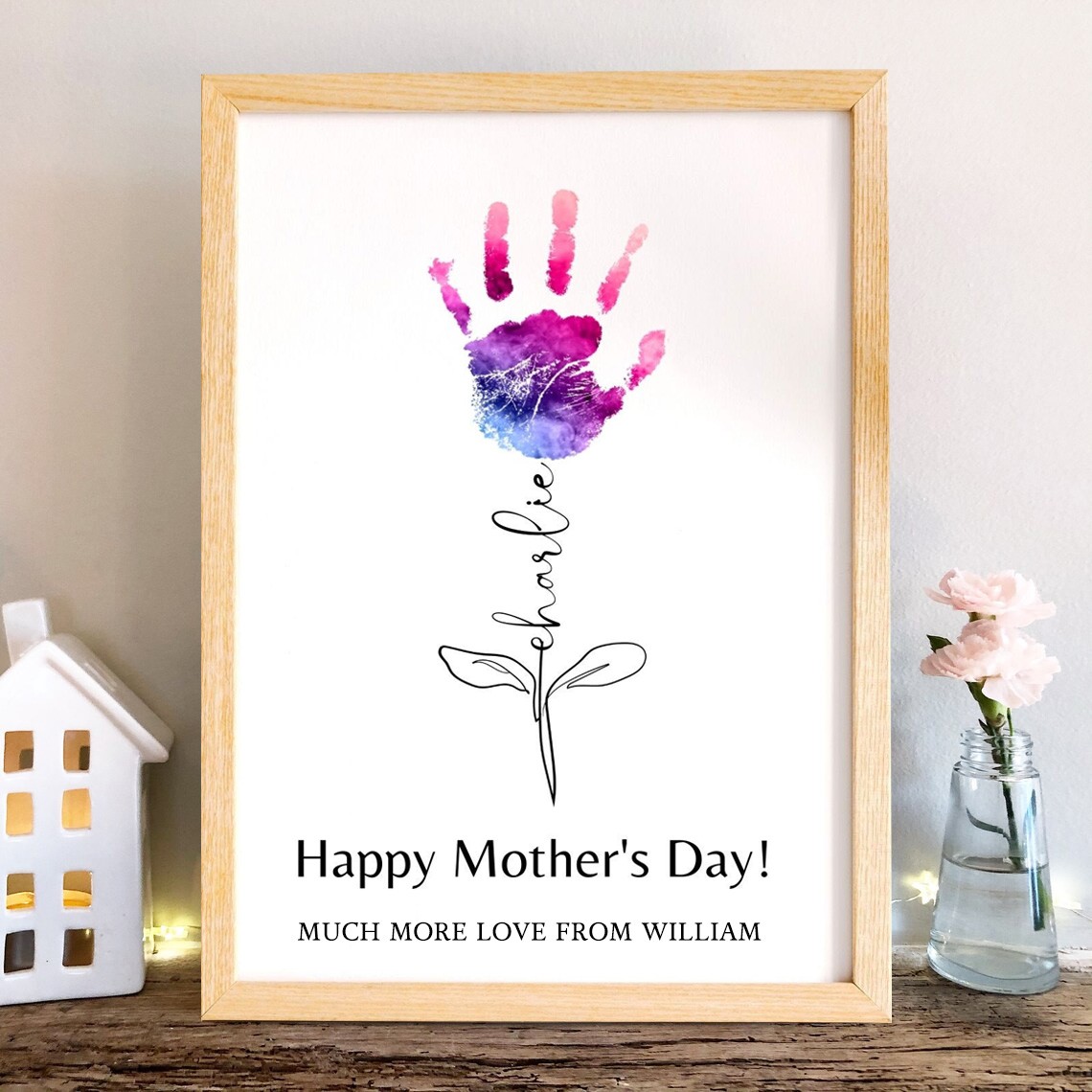 Custom DIY Handprint Wooden Frame With Kids Names Mother's Day Gift Ideas GIft For New Mom