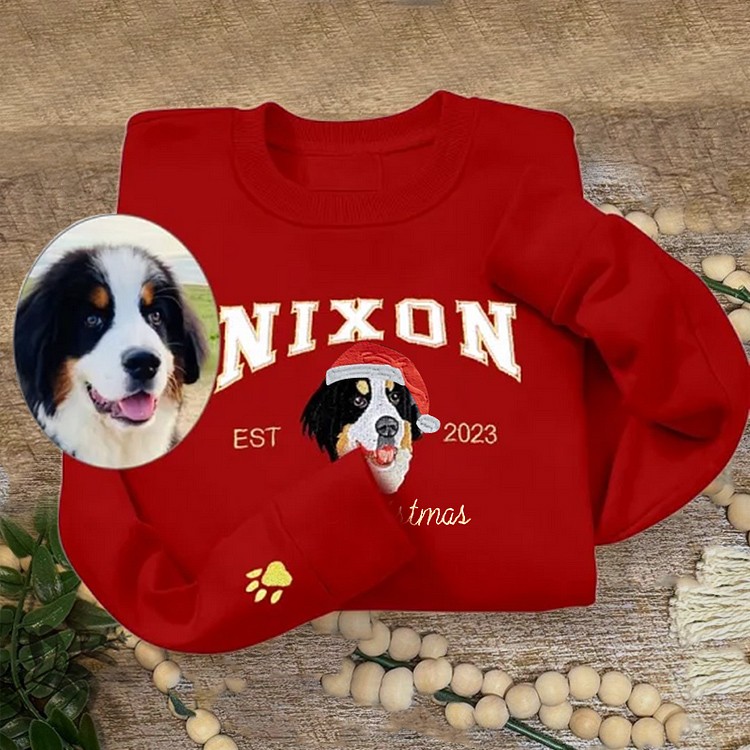 Custom Dog Sweatshirt with Dogs Face on It Christmas Pet Embroidered Sweatshirt Gifts for Dog Owners Christmas Gift