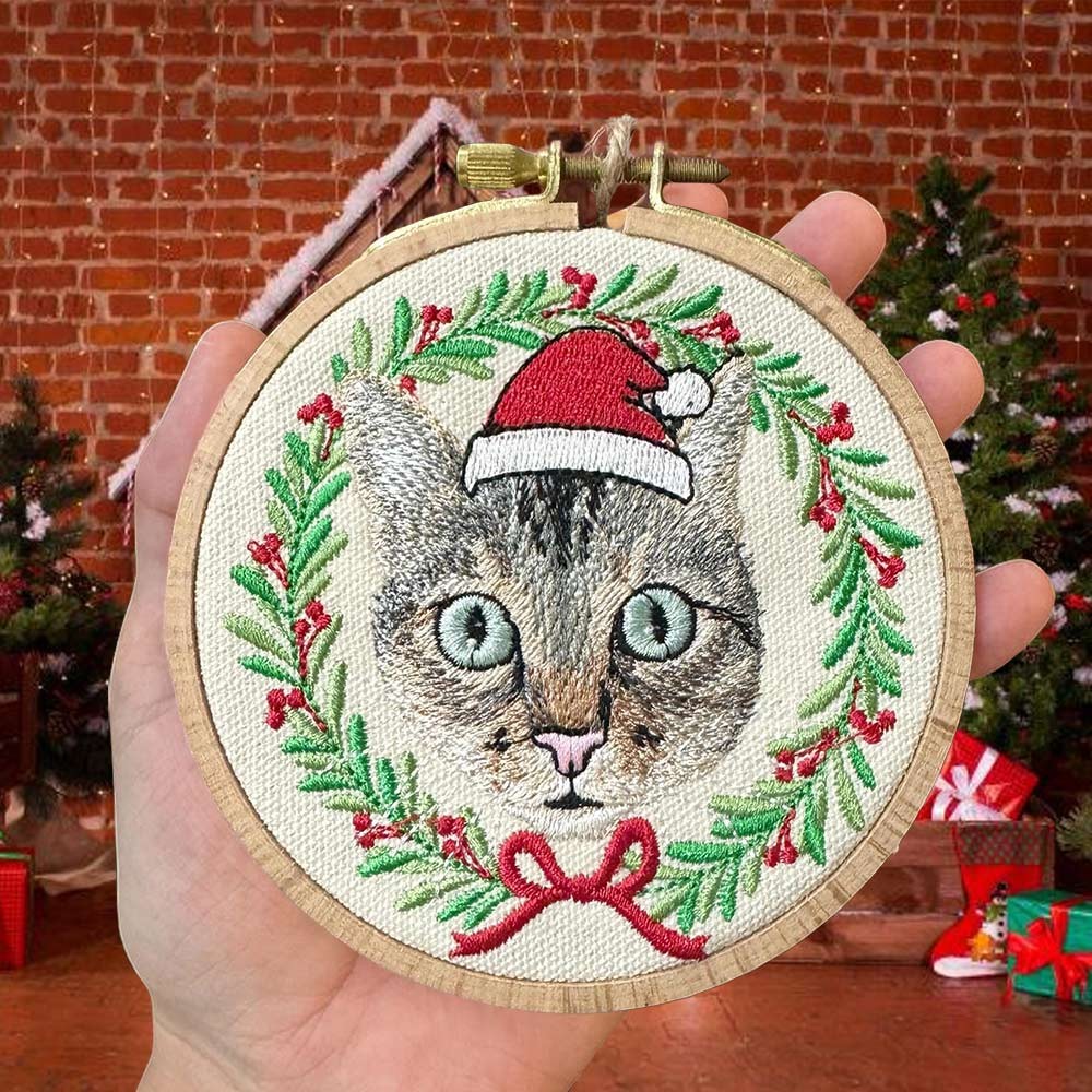 Custom Embroidered Cat Portrait Photo Ornament Gifts for Cat Lovers Pet Memorial Gift Christmas Gift for Pet Lovers