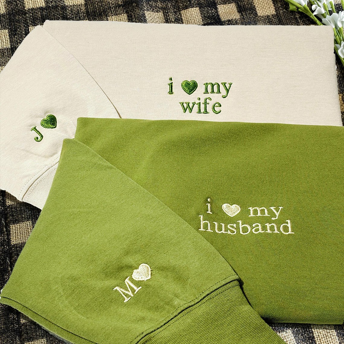 Custom Embroidered Couple Matching Sweatshirt with Initial On Sleeve 1st Anniversary Gift Valentine's Day Gifts for Wife Husband