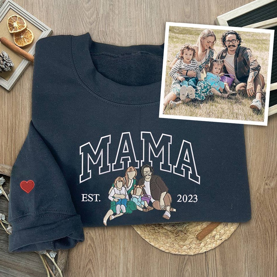 Custom Embroidered Mama Photo Portrait Hoodie with Kids Names on Sleeve Gifts for Mom Mother's Day Gift Ideas