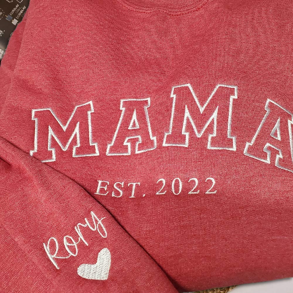 Custom Embroidered Mama Sweatshirt With Kids Names on Sleeve for Mom Grandma New Mom Gift Mother's Day Gift Ideas