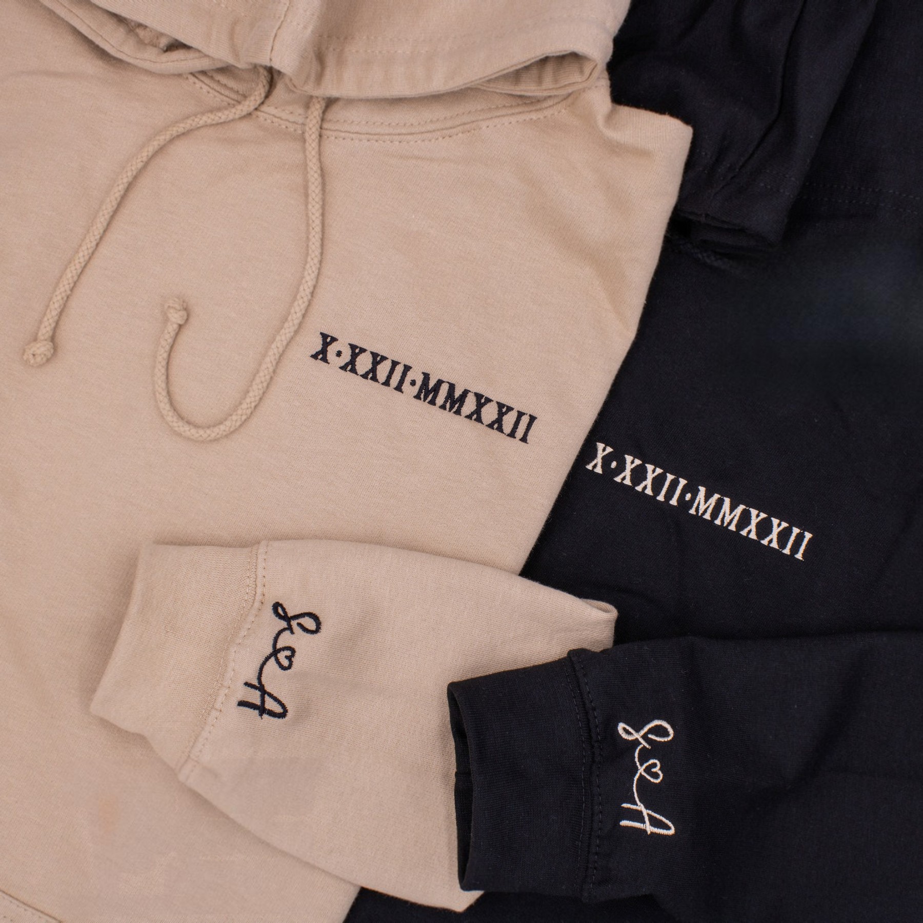 Custom Embroidered Roman Numeral Couple Matching Hoodie 1st Anniversary Gifts for Him Valentine's Day Gift for Couples