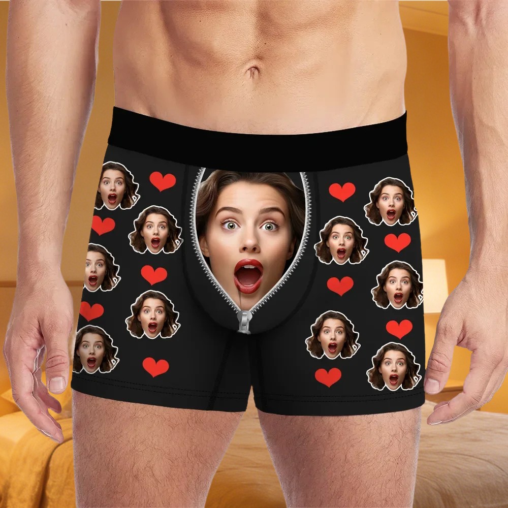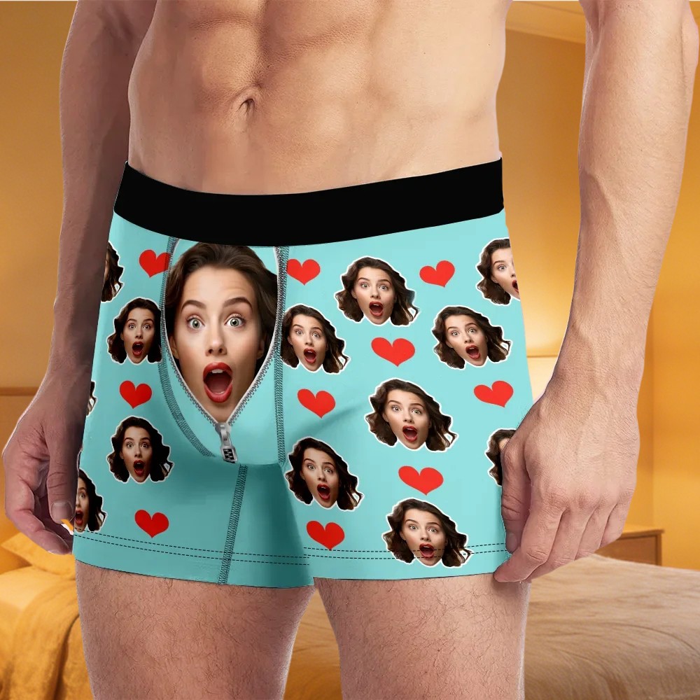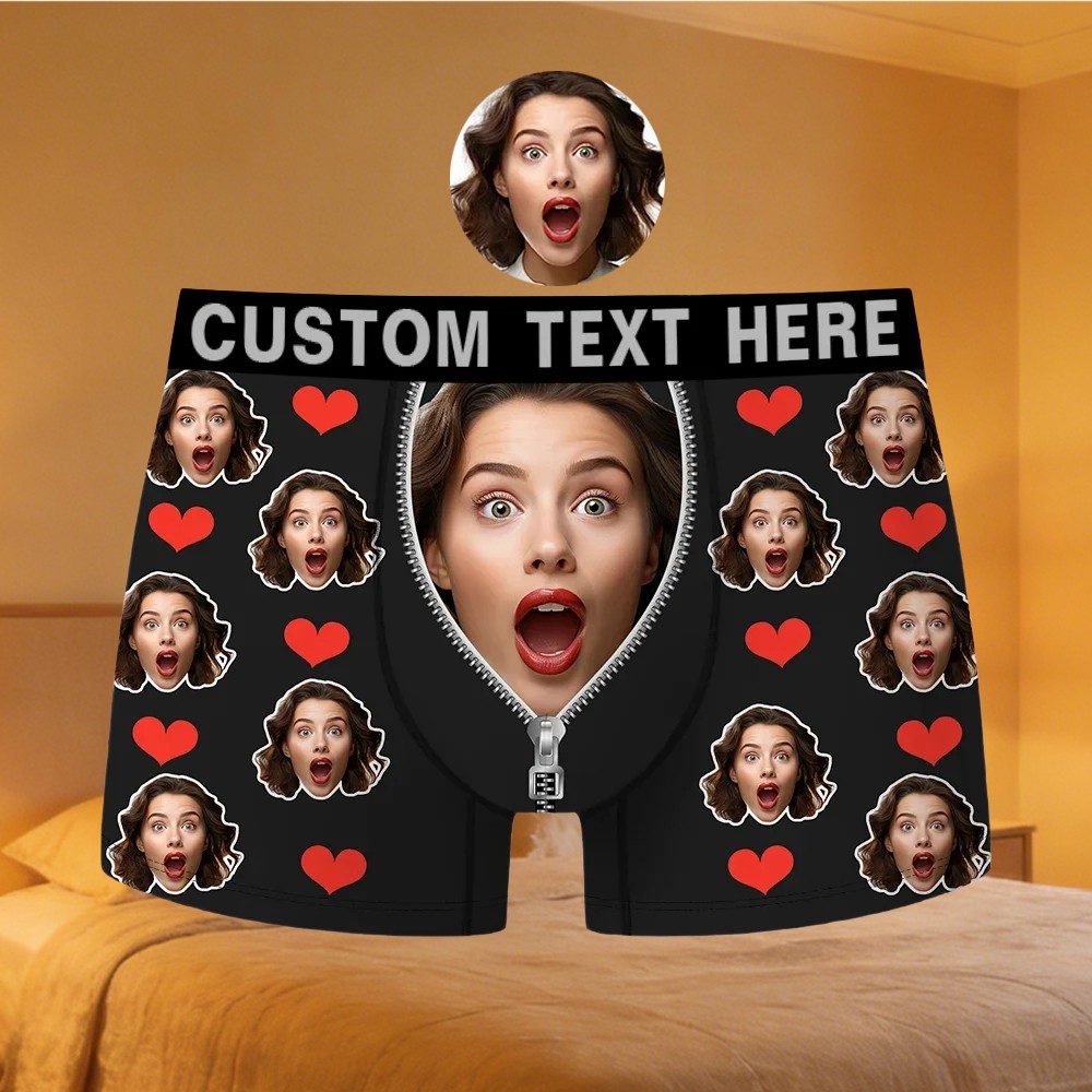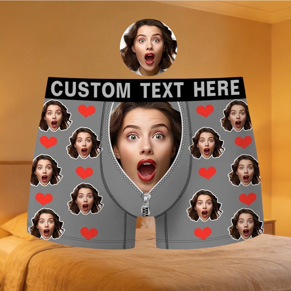 Custom Face Men's Boxer with Text Funny Gifts for Boyfriend Husband Valentine's Day Gift for Him