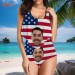 Custom Face Pattern American Flag Ruffle Tankini Swimsuit Set Personalized Summer Beach Party Gift For Her