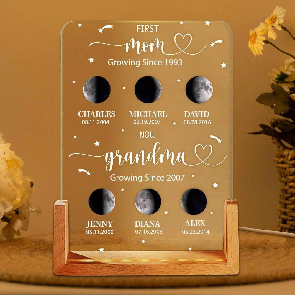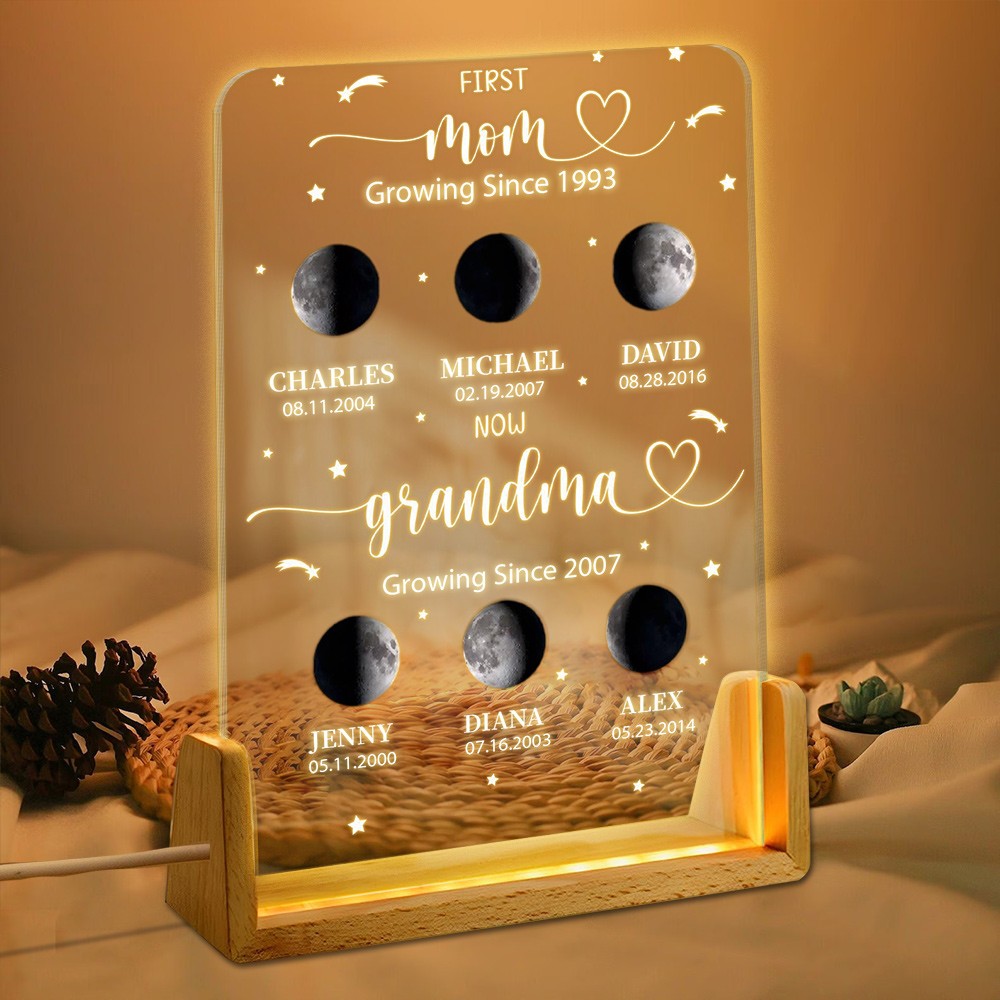 Custom First Mom Now Grandma Moon Phase Night Light By Date with Kids Names Gift for Mom Grandma Mother's Day Gift Ideas