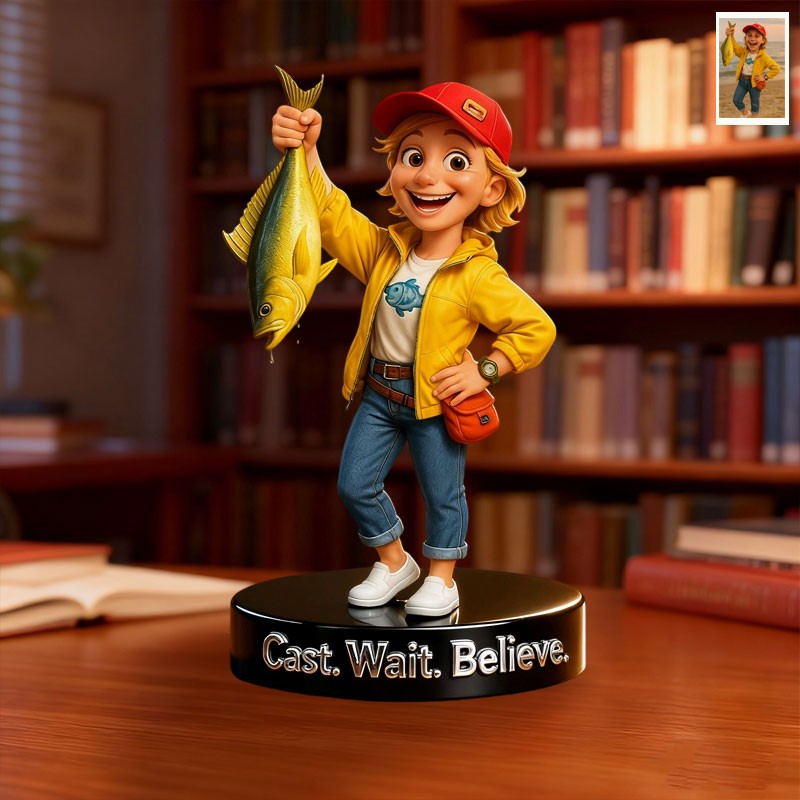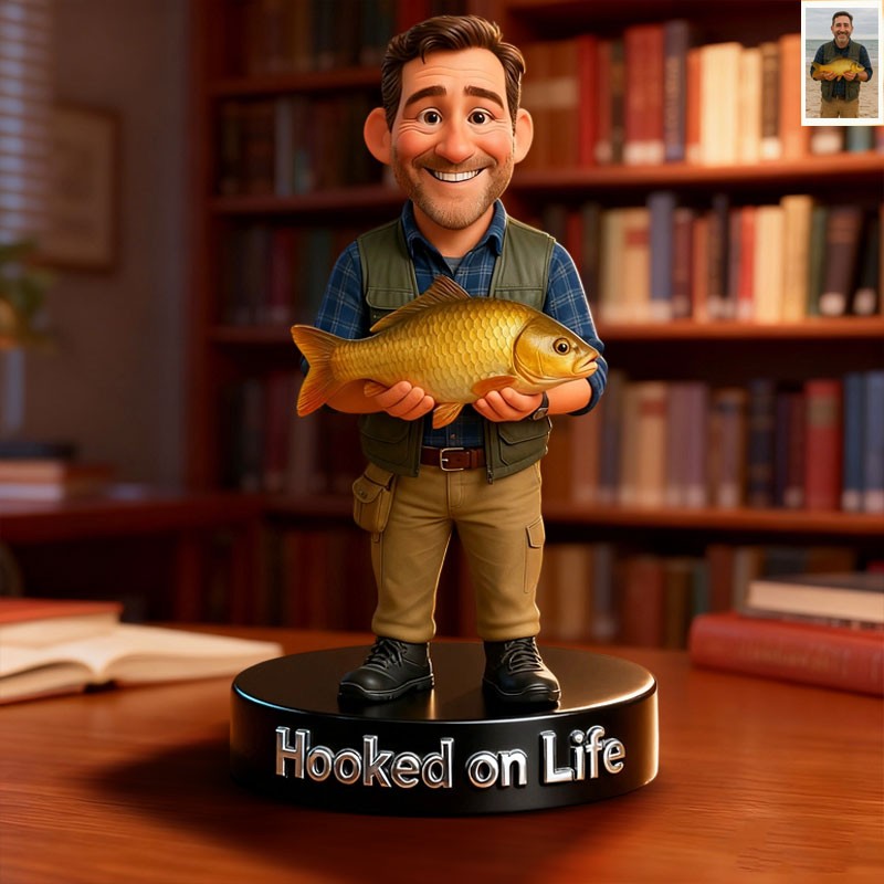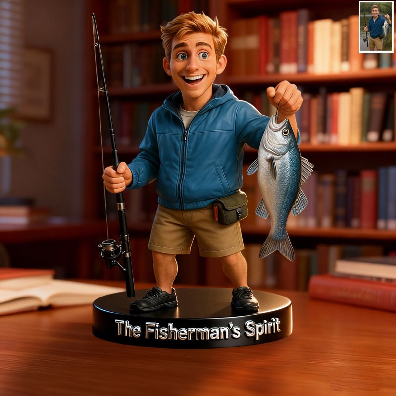 Custom Fishing Photo Portrait Cartoon Style Figurine for Him Unique Desk Decor Gifts for Fisherman Christmas Gift