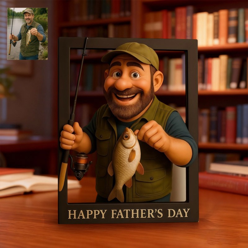 Custom Fishing Photo Portrait Cartoon Style Figurine for Him Unique Desk Decor Gifts for Fisherman Christmas Gift