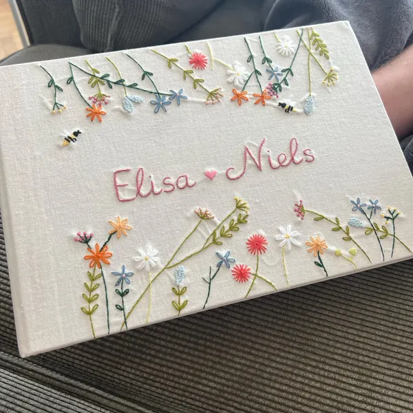 Custom Floral Hand Embroidered Wedding Guest Book Personalized Memory Book Gifts for Couple Unique Wedding Gift