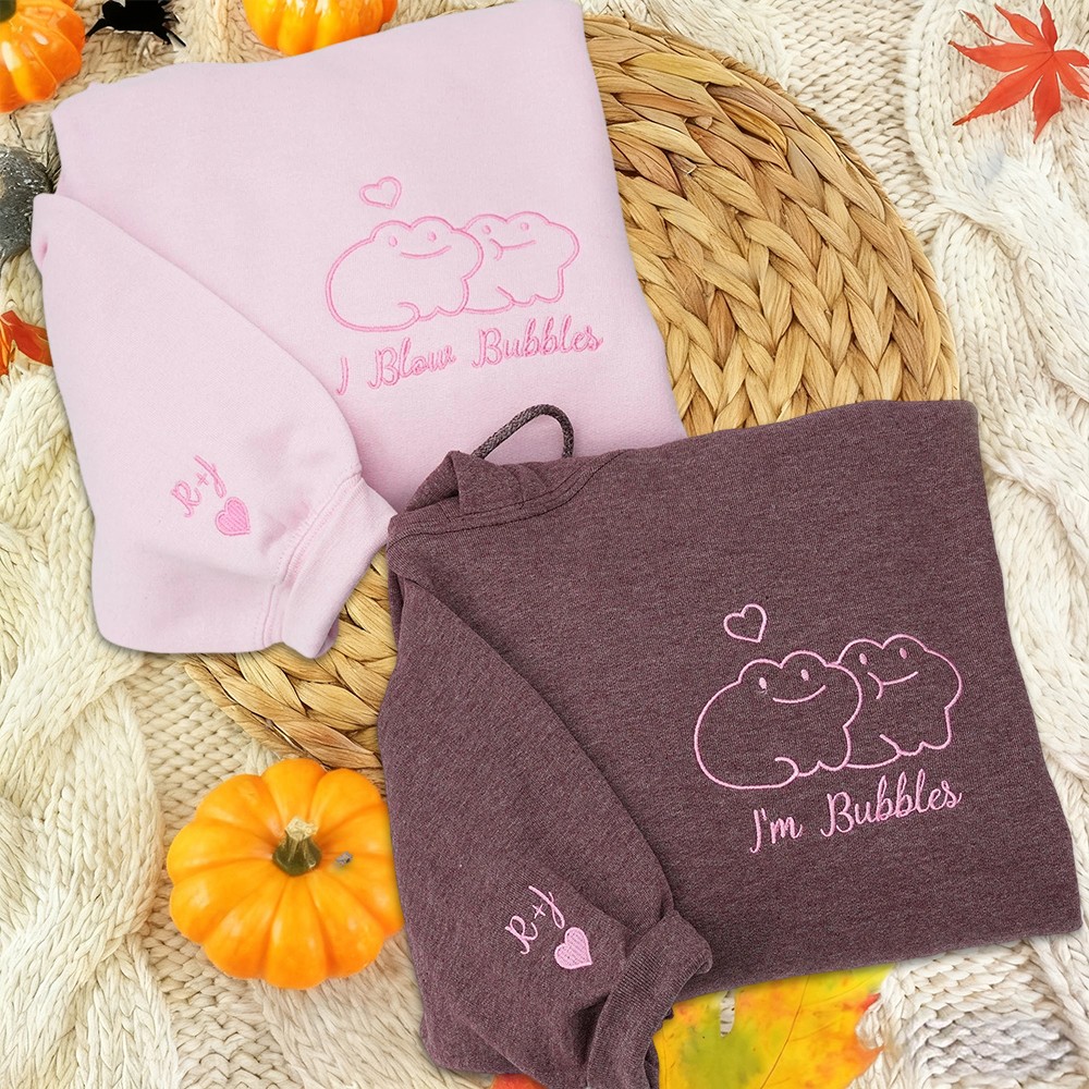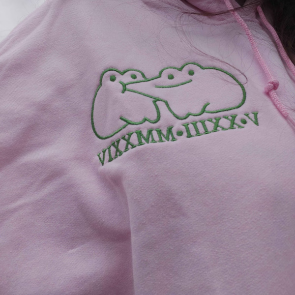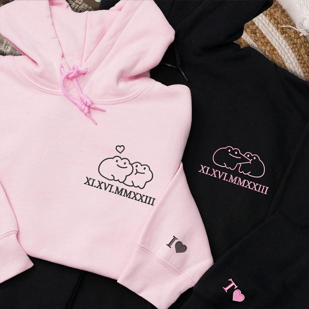 Custom Frog Couple Embroidered Matching Hoodie with Roman Date & Initials 1st Anniversary Gifts Valentine's Day Gift