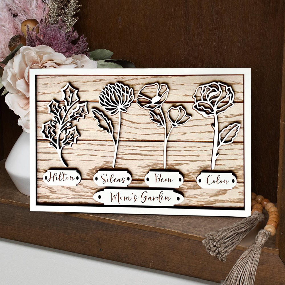 Custom Gigi's Garden Birth Flower Frame Wooden Names Sign Gift For Mom Grandma Mother's Day Gift Ideas