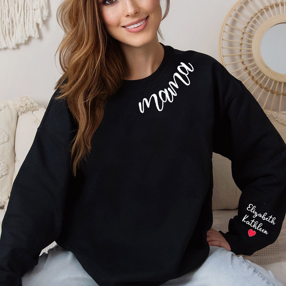 Custom Grandma Embroidered Sweatshirt Hoodie With Grandkids Names On The Sleeve Gift For Mom Grandma